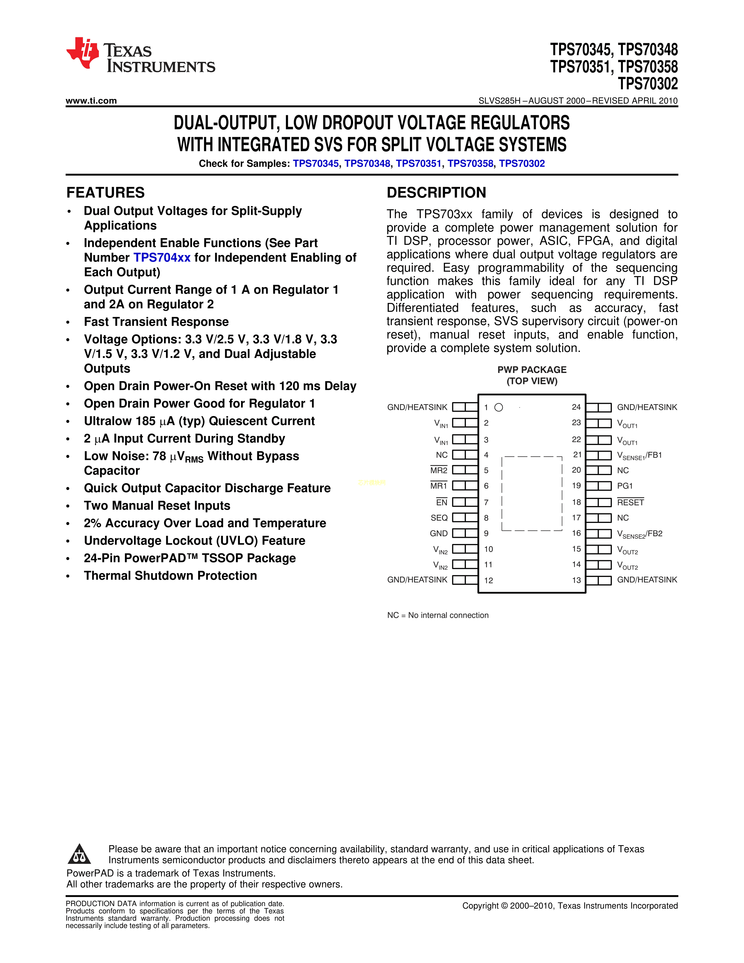 TPS70348PWP数据手册HTSSOP-24封装TI(德州仪器)PDF规格书,中英文下载