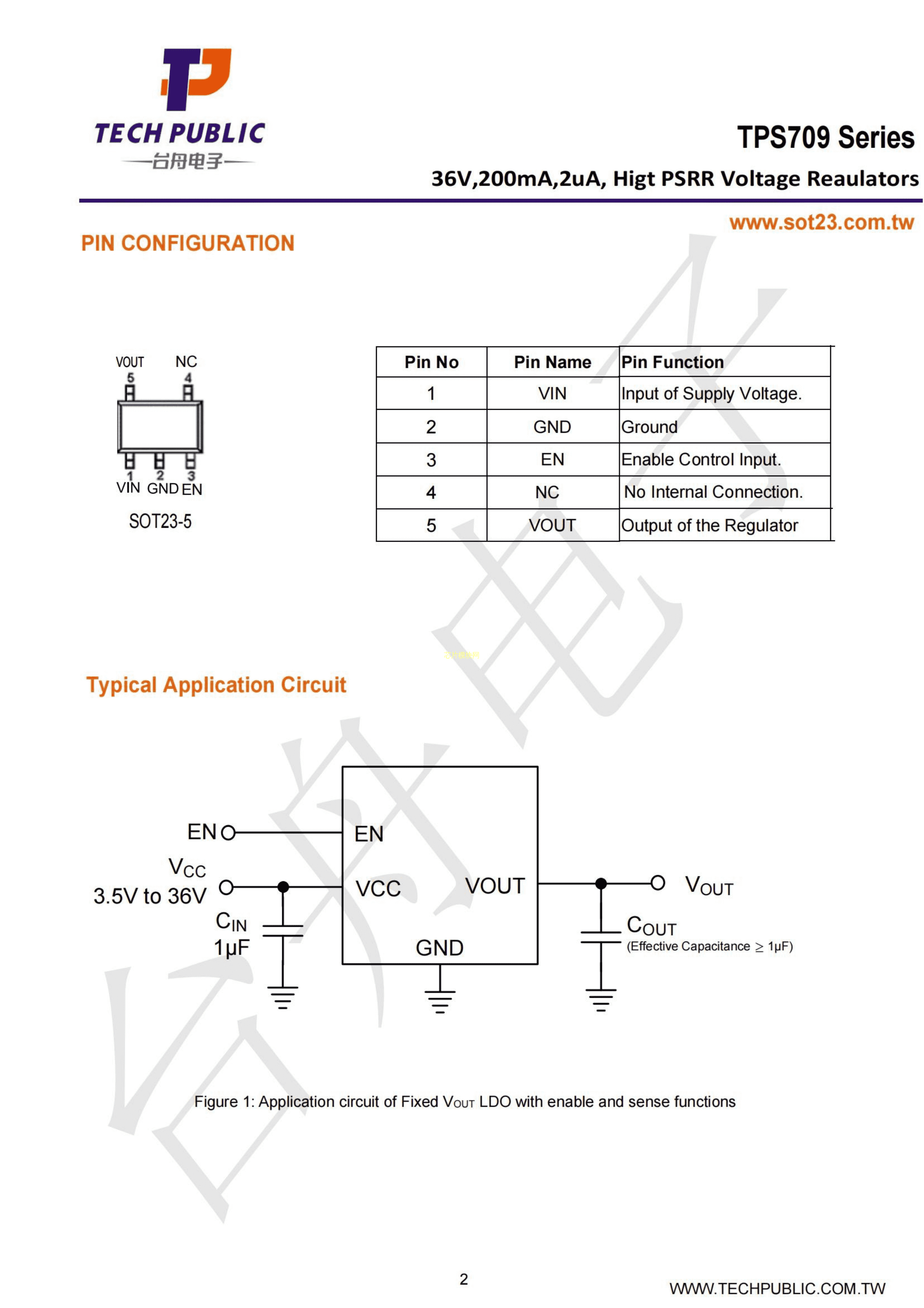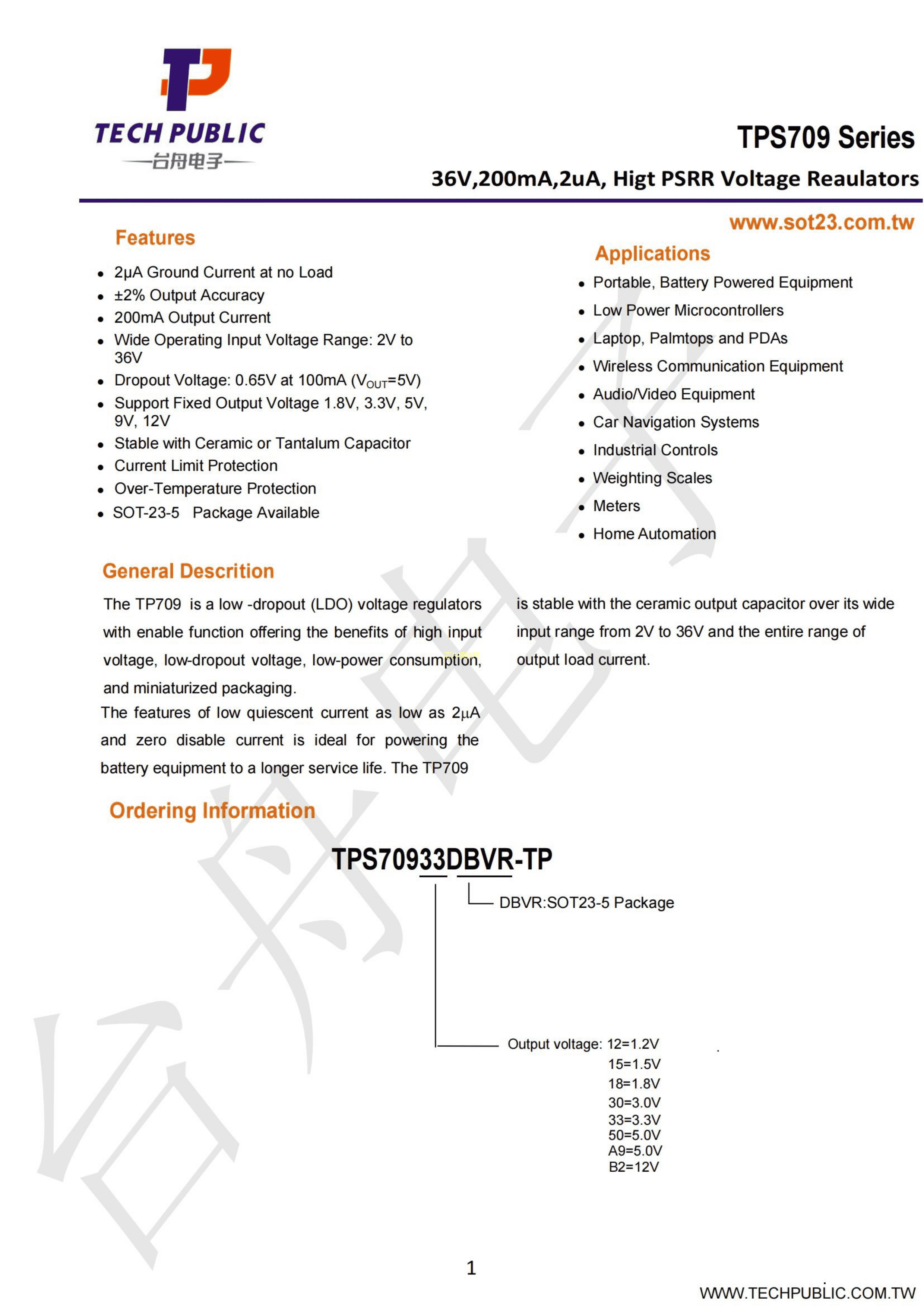 TPS70933DBVR-TP数据手册SOT23-5封装TECHPUBLIC(台舟)PDF规格书,中英文下载