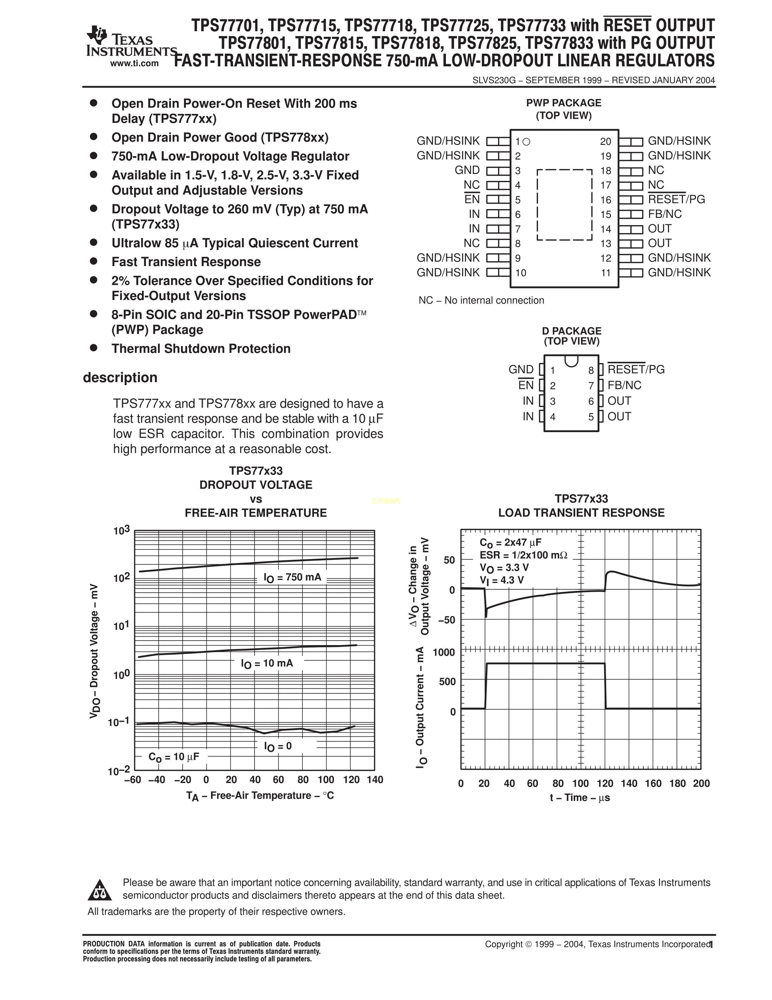TPS77733DR数据手册SOIC-8_150mil封装TI(德州仪器)PDF规格书,中英文下载