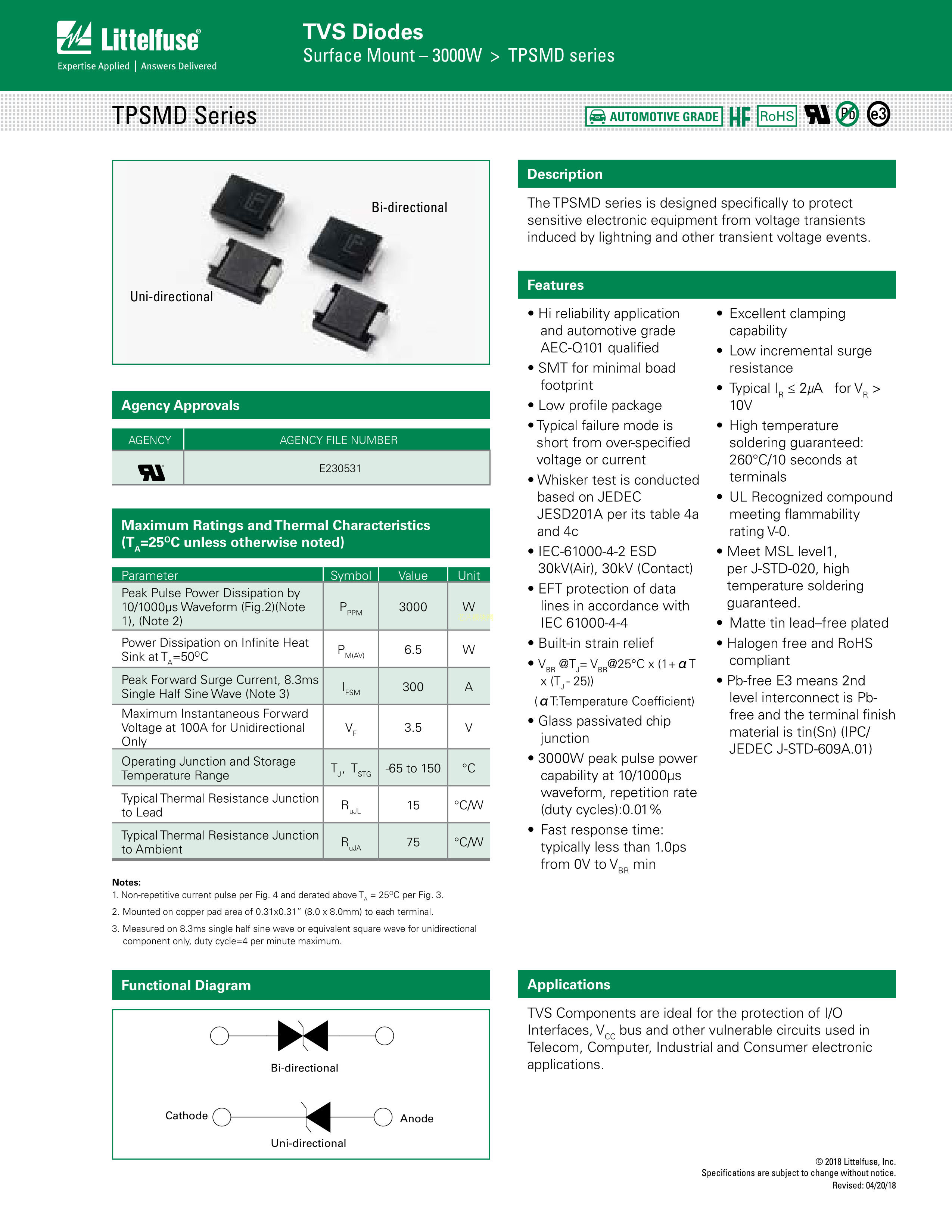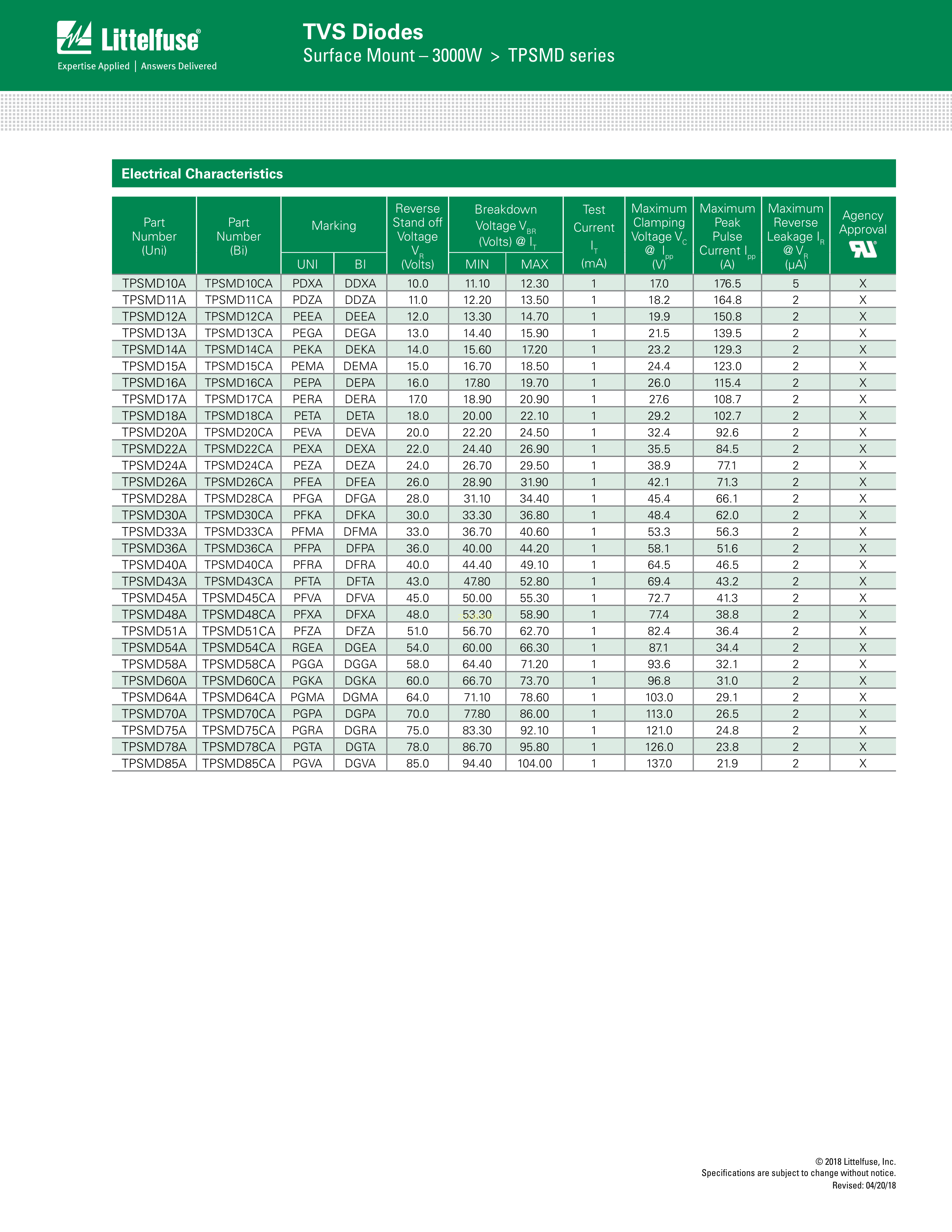 TPSMD24CA数据手册SMC封装Littelfuse(美国力特)PDF规格书,中英文下载