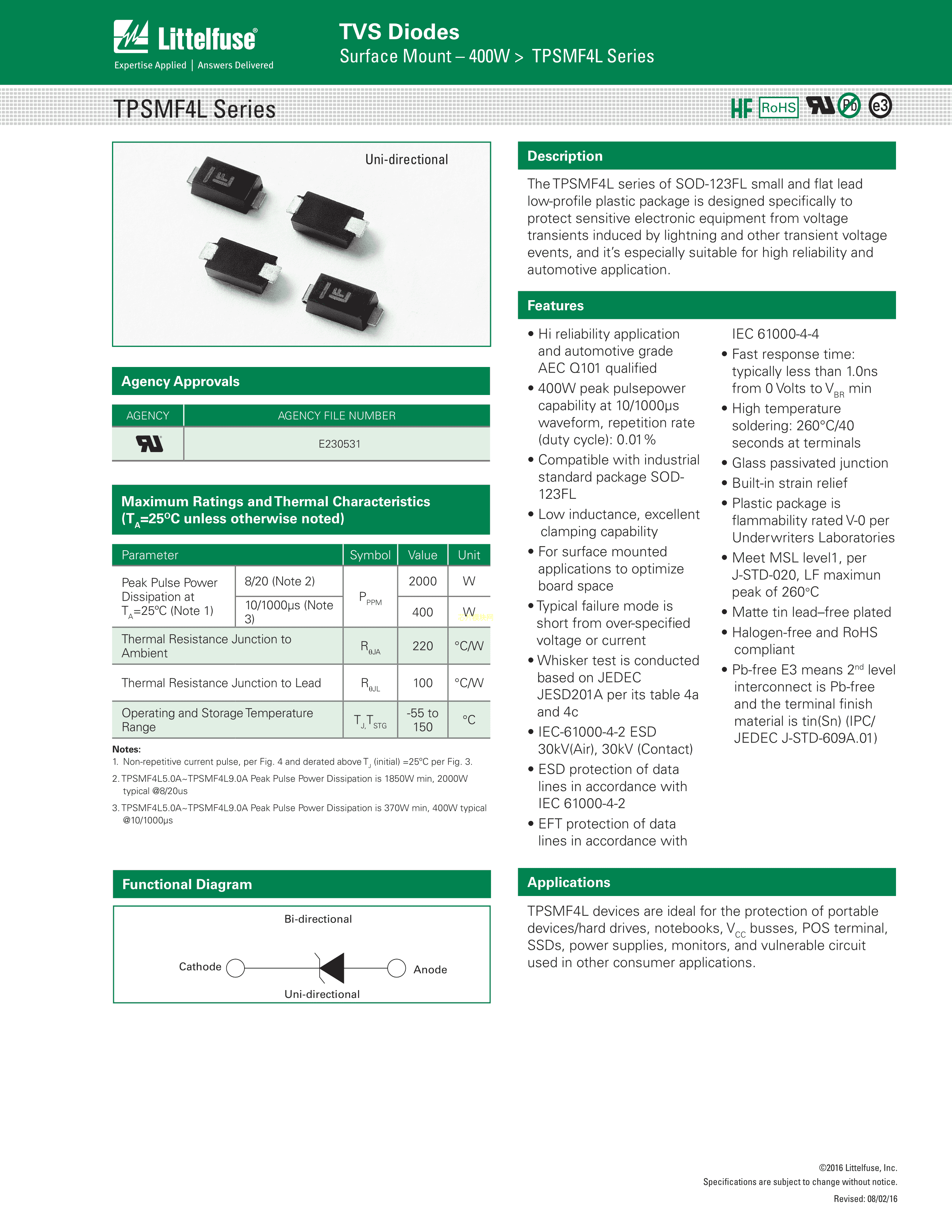 TPSMF4L60A数据手册SOD-123FL封装Littelfuse(美国力特)PDF规格书,中英文下载