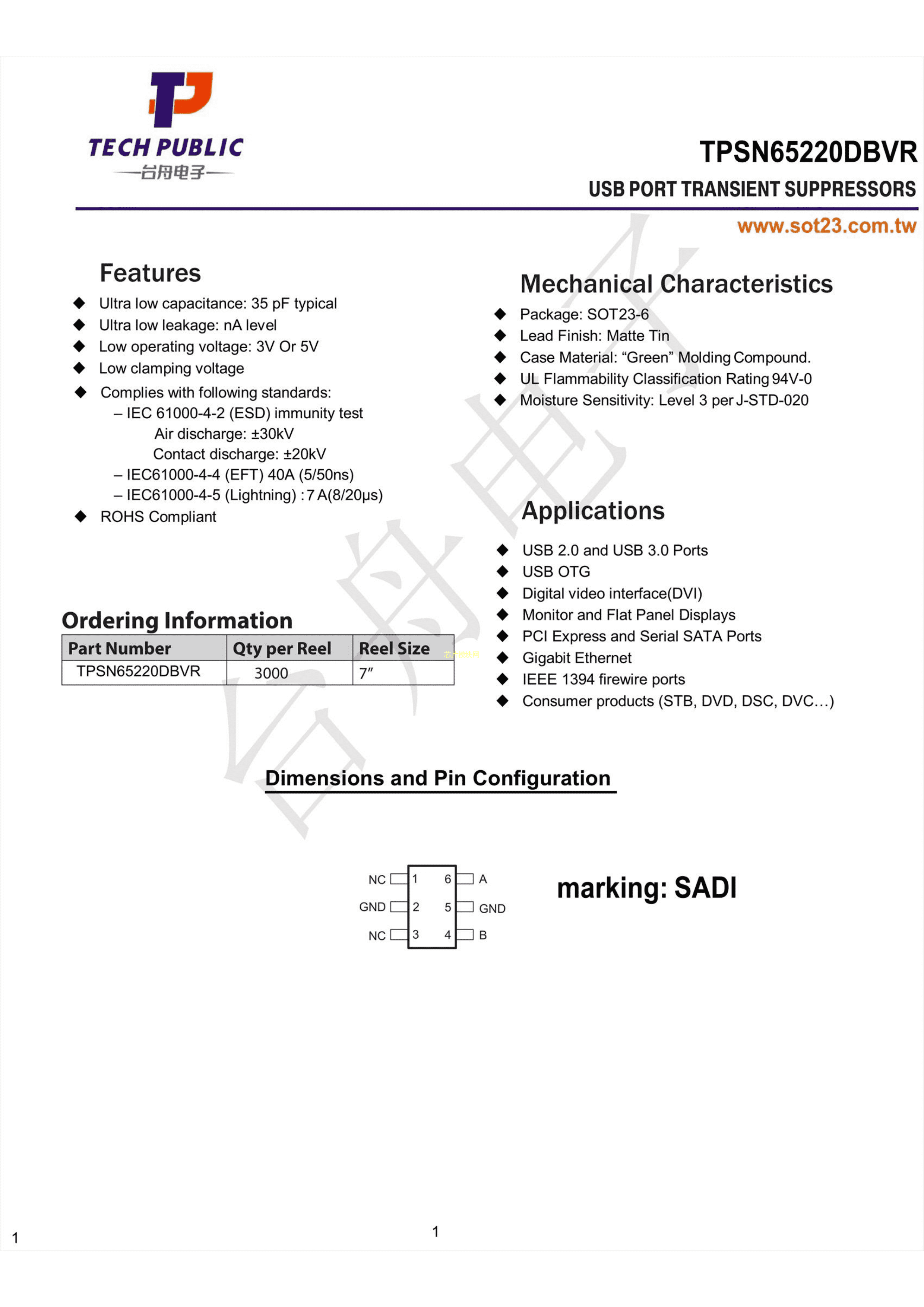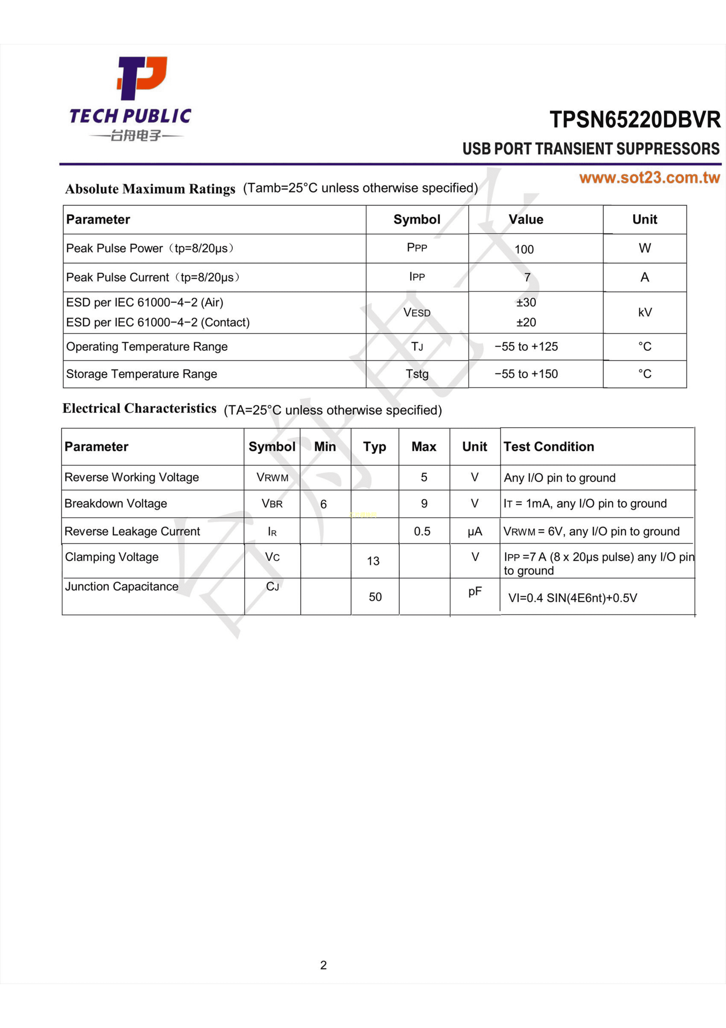 TPSN65220DBVR数据手册SOT-23-6封装TECHPUBLIC(台舟)PDF规格书,中英文下载