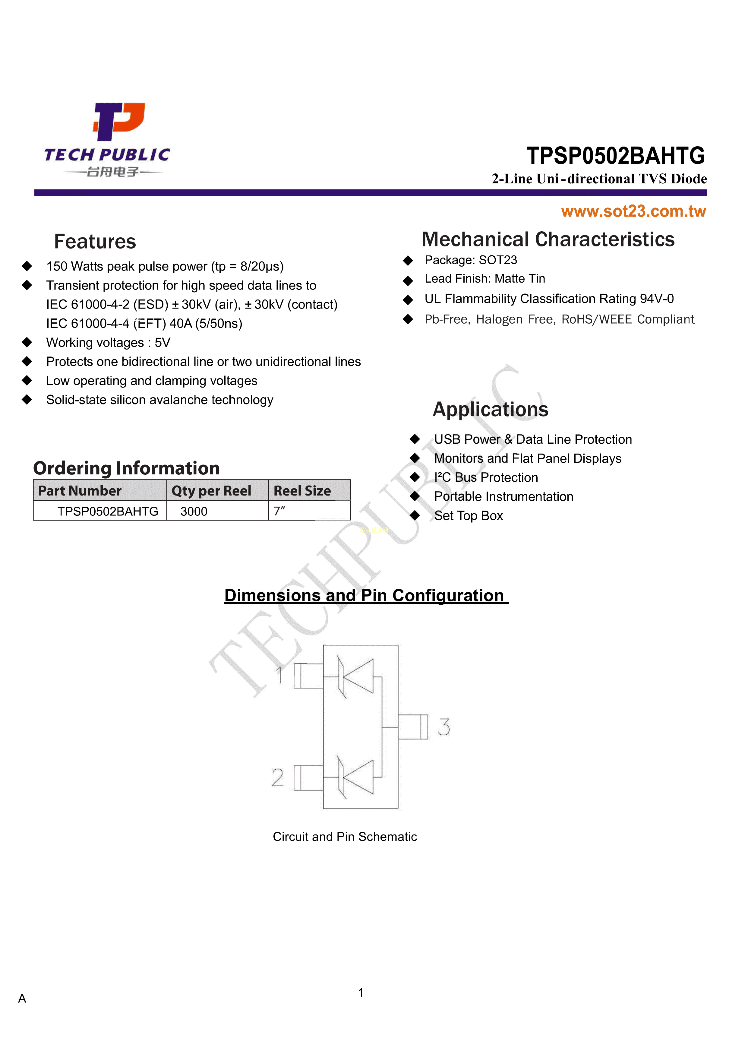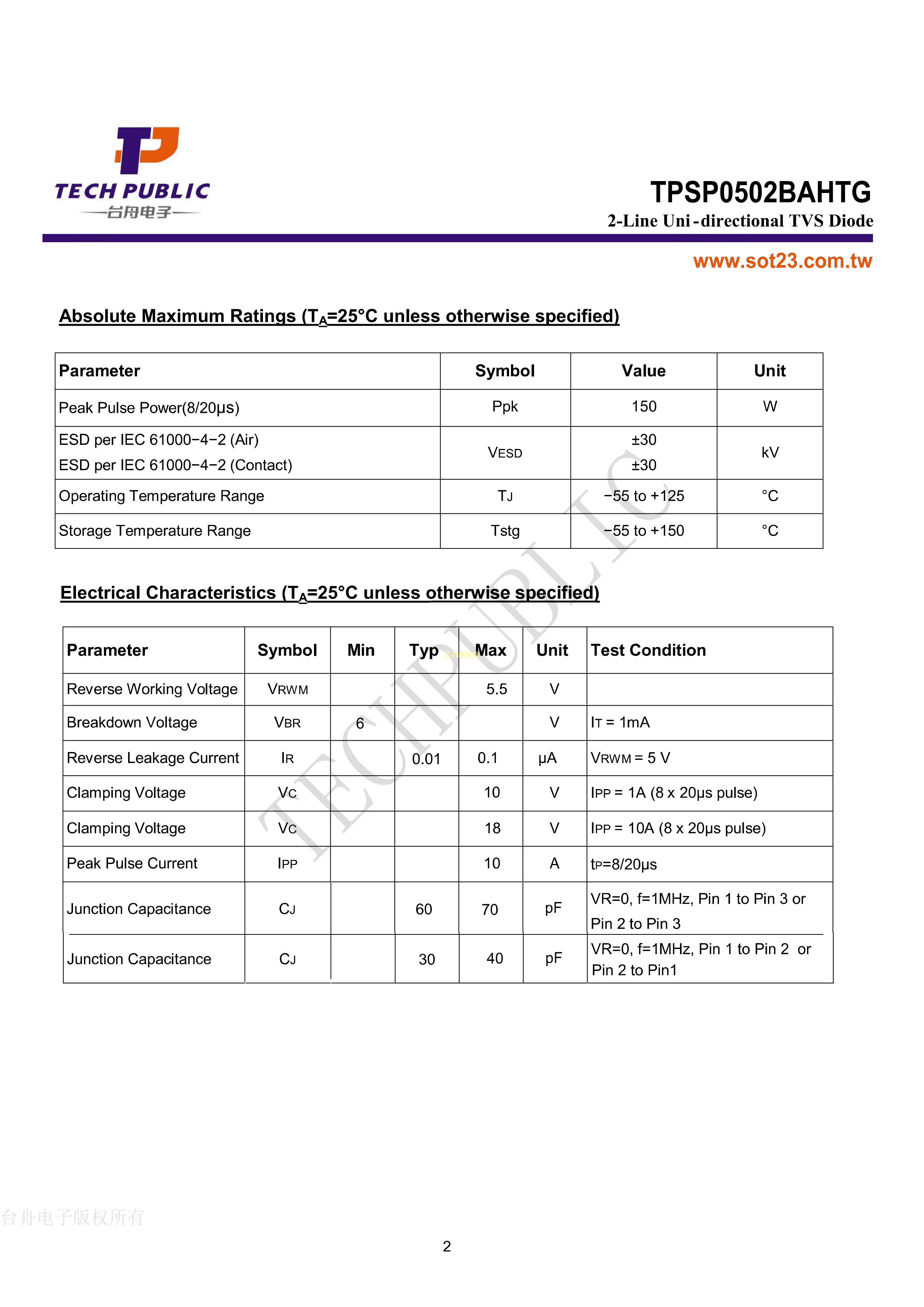 TPSP0502BAHTG数据手册SOT-23封装TECHPUBLIC(台舟)PDF规格书,中英文下载