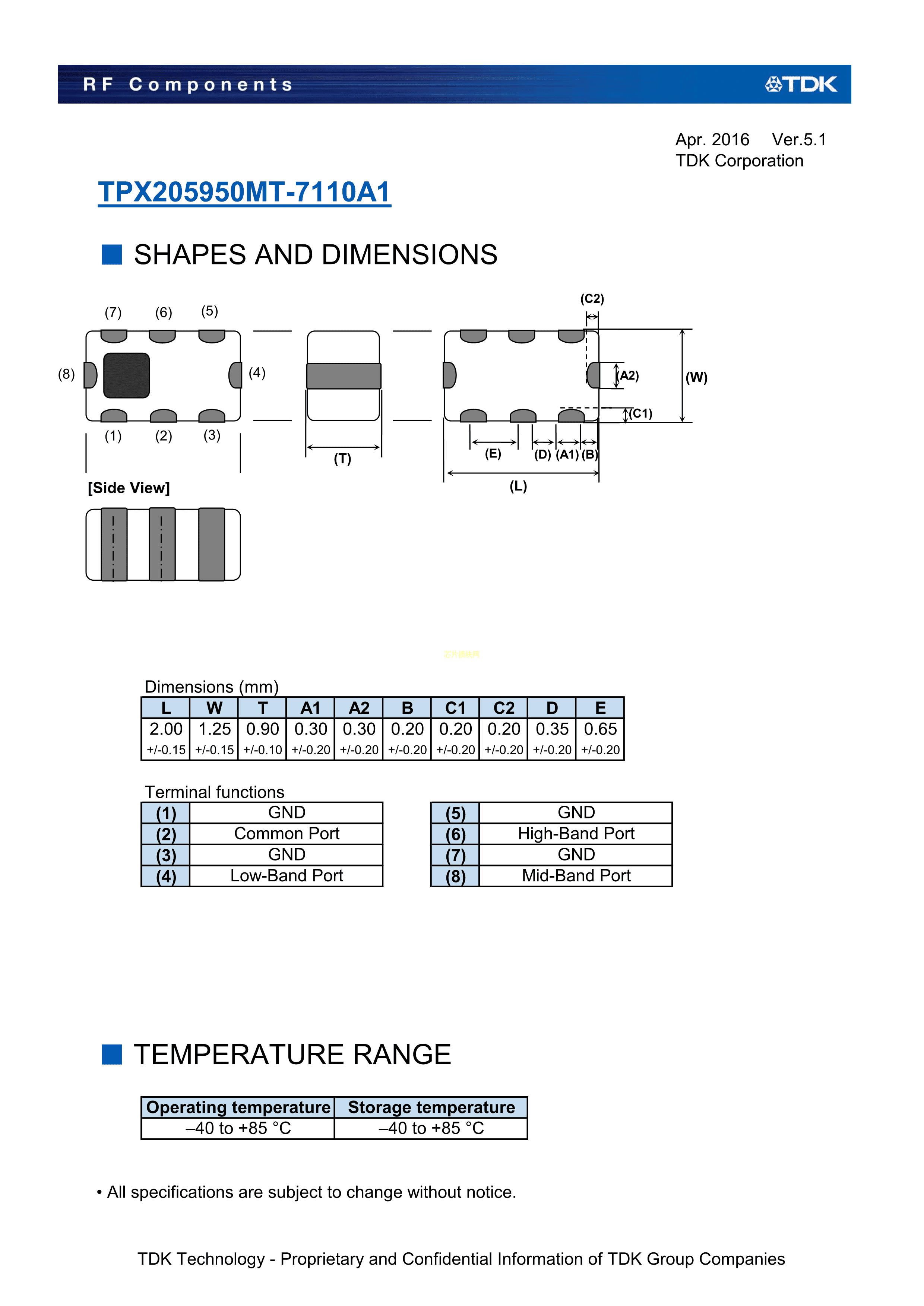 TPX205950MT-7110A1数据手册贴片封装TDKPDF规格书,中英文下载