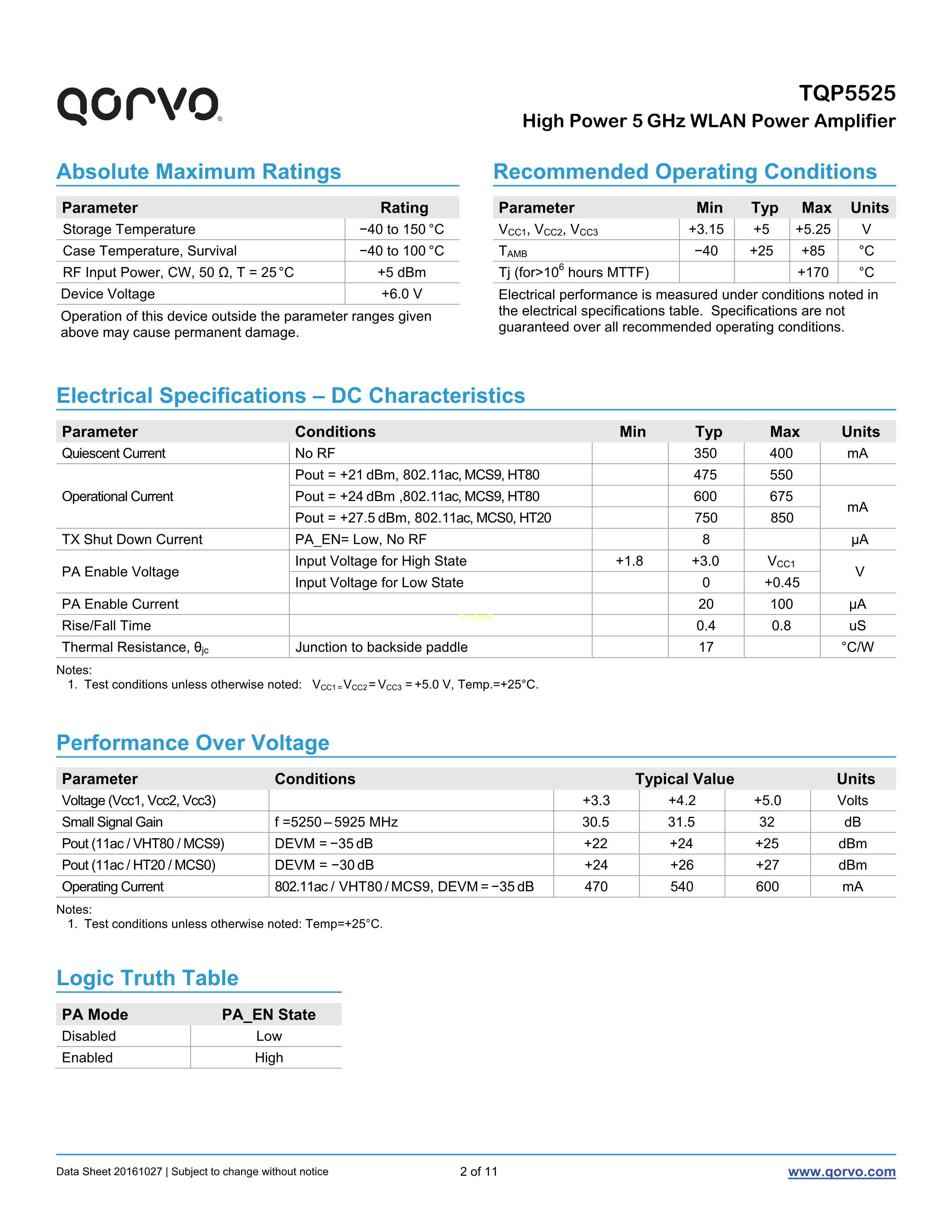 TQP5525数据手册QFN-20_EP封装QorvoPDF规格书,中英文下载
