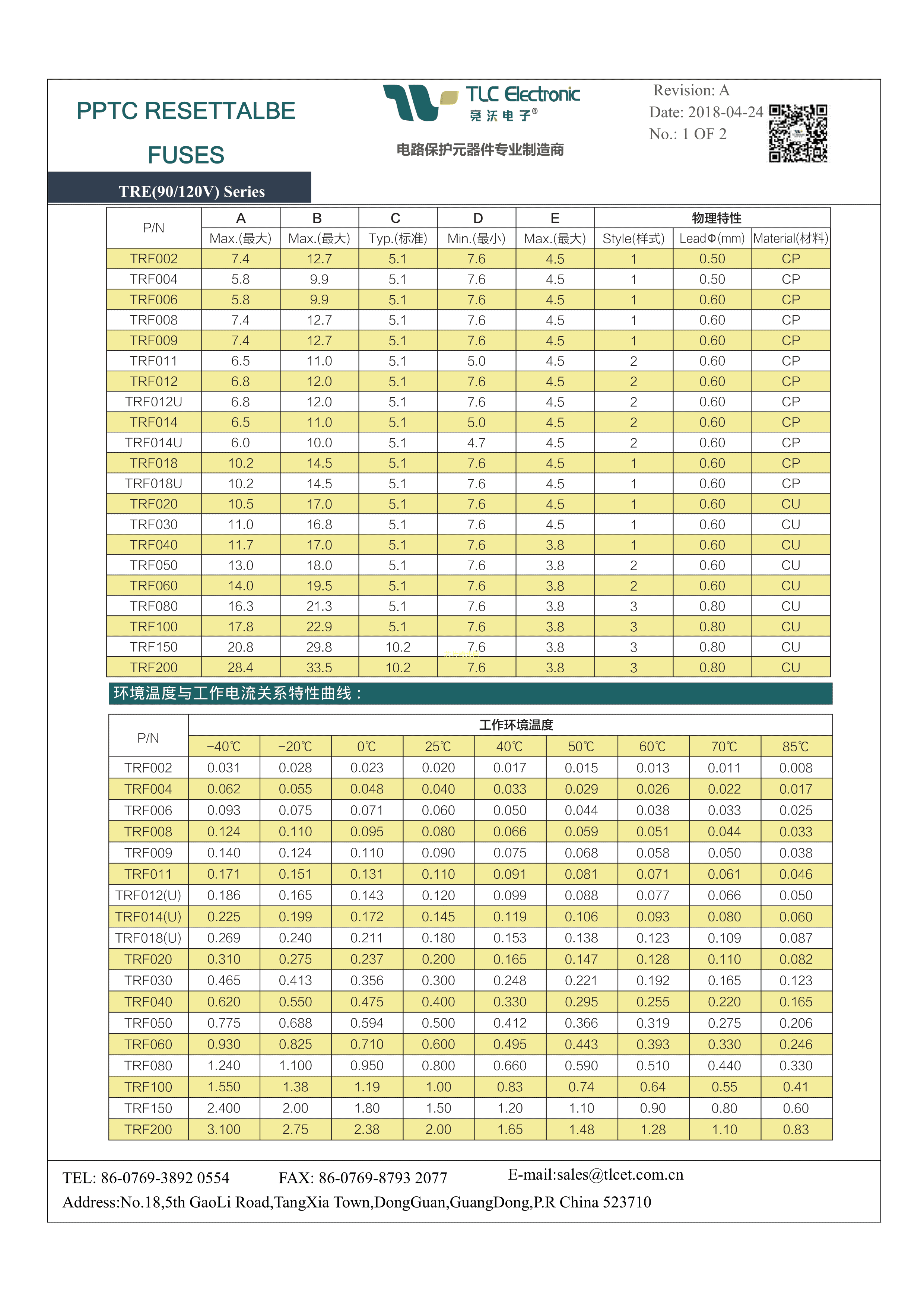 TRF100数据手册径向引线P=5.1mm封装TLC(竞沃)PDF规格书,中英文下载