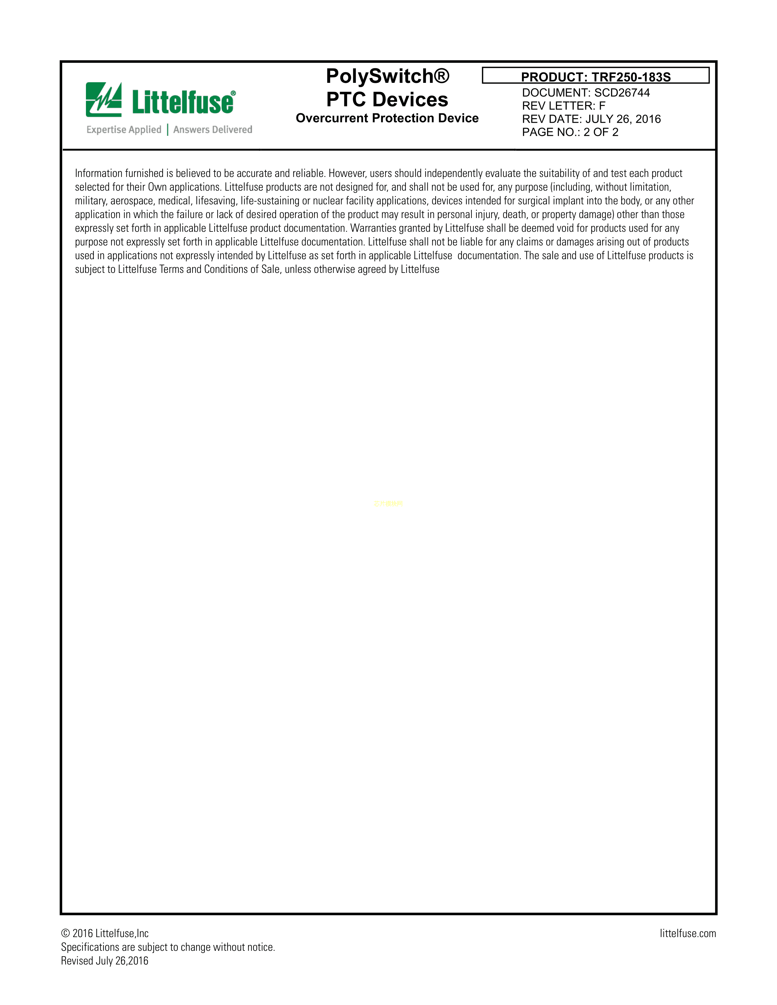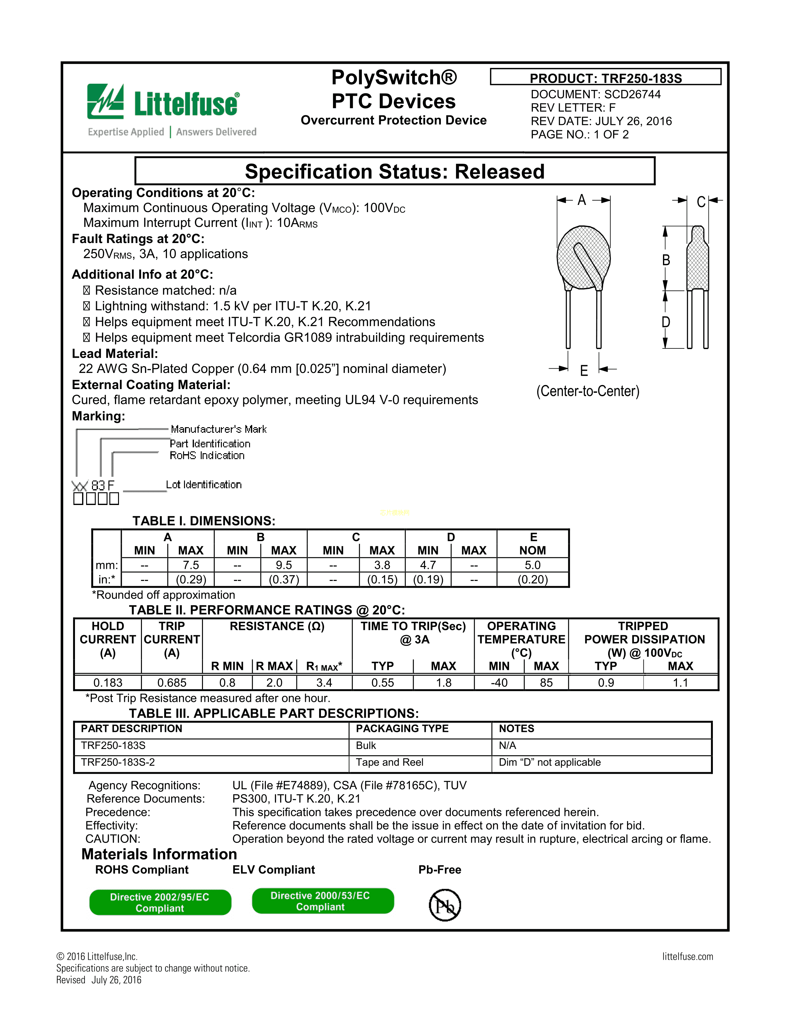 TRF250-183S-2数据手册径向引线封装Littelfuse(美国力特)PDF规格书,中英文下