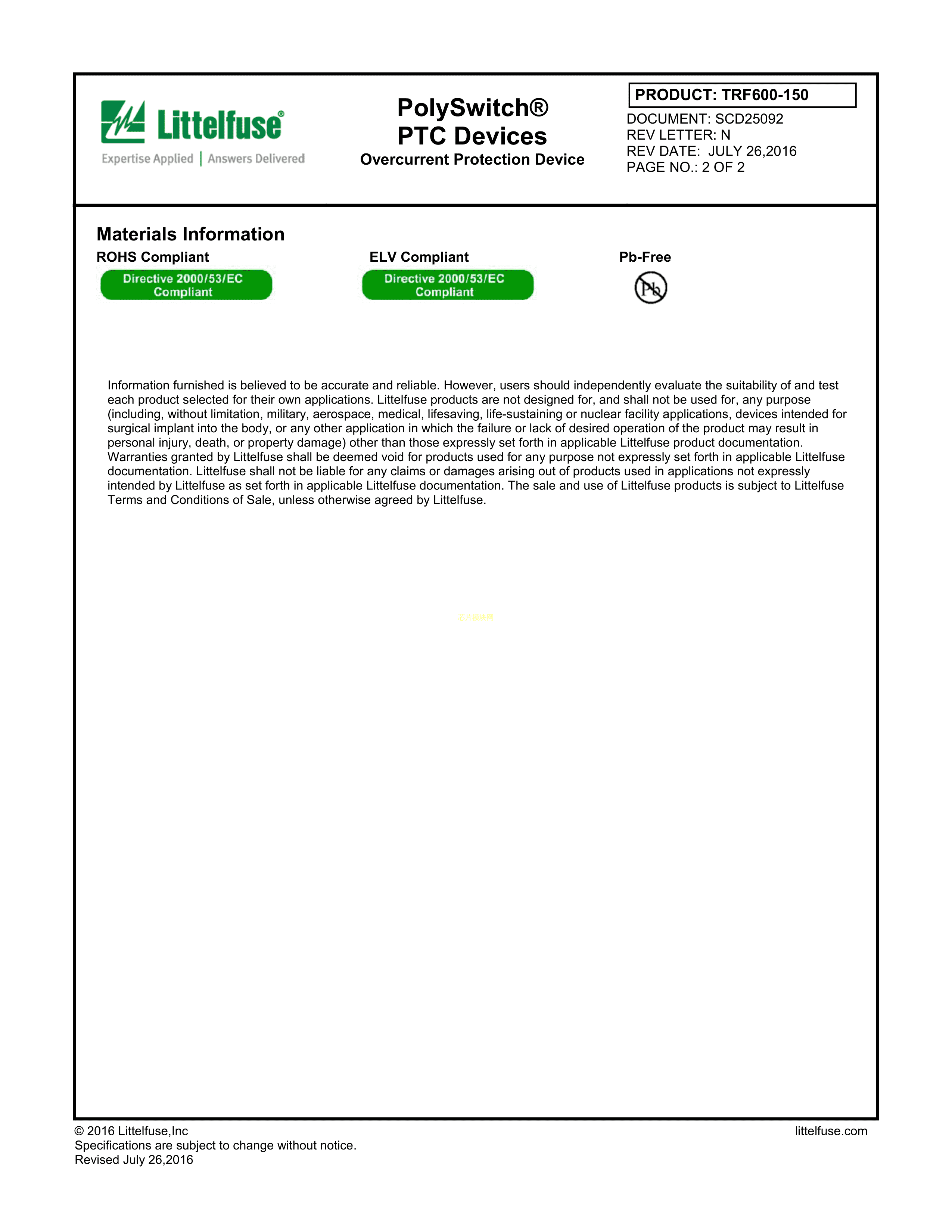 TRF600-150数据手册径向引线封装Littelfuse(美国力特)PDF规格书,中英文下载