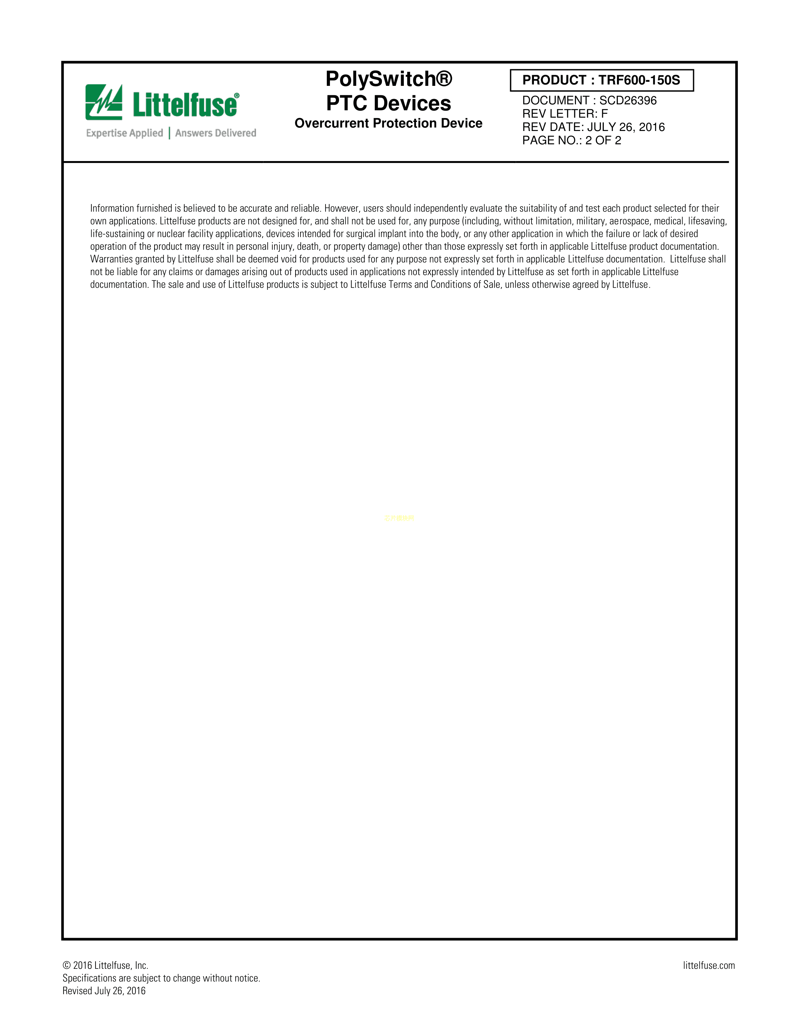 TRF600-150S-2数据手册径向引线封装Littelfuse(美国力特)PDF规格书,中英文下