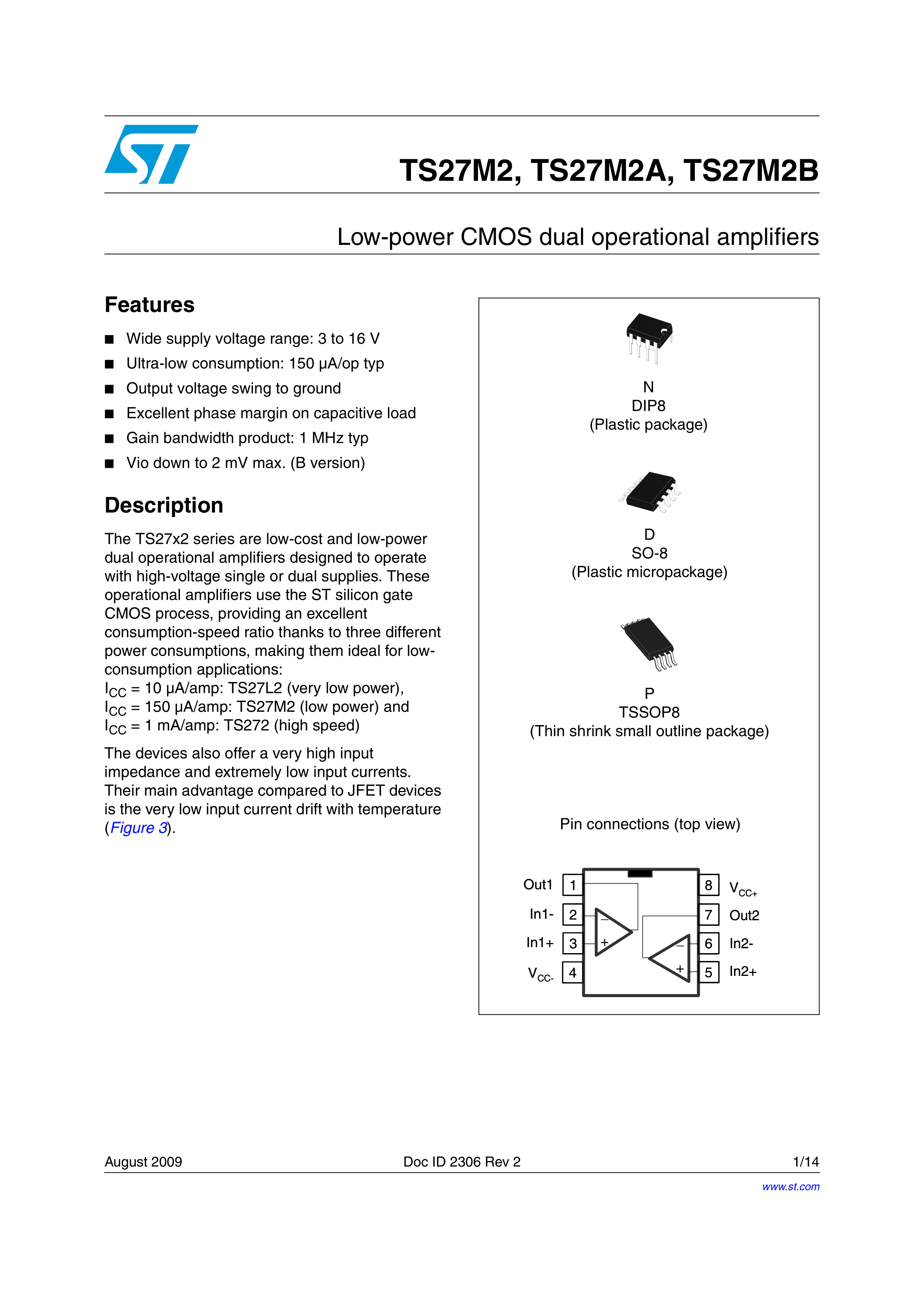 TS27M2IDT数据手册SO-8封装ST(意法半导体)PDF规格书,中英文下载