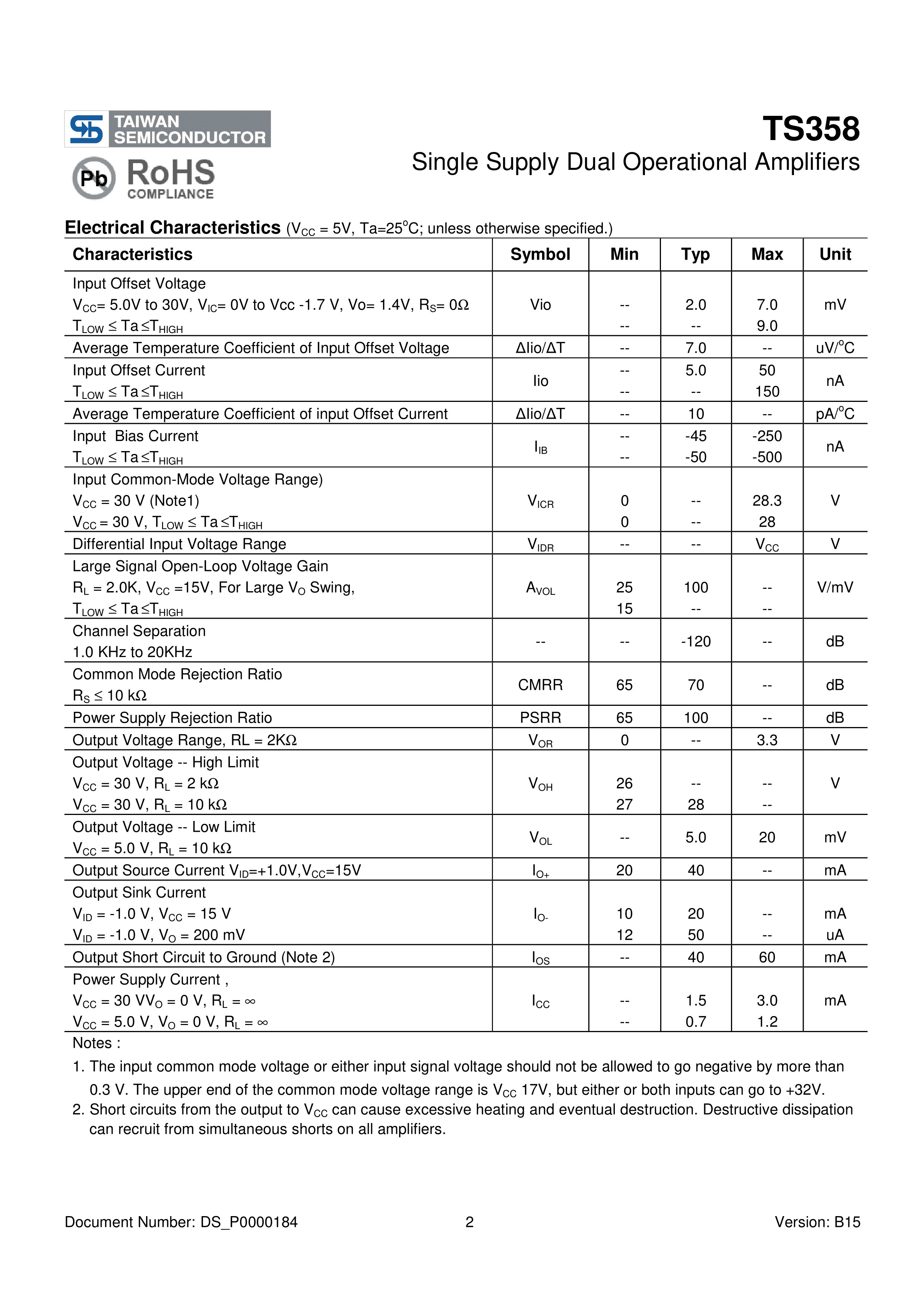TS358CS RLG数据手册SOP-8封装Taiwan Semiconductor(台湾半导体)P