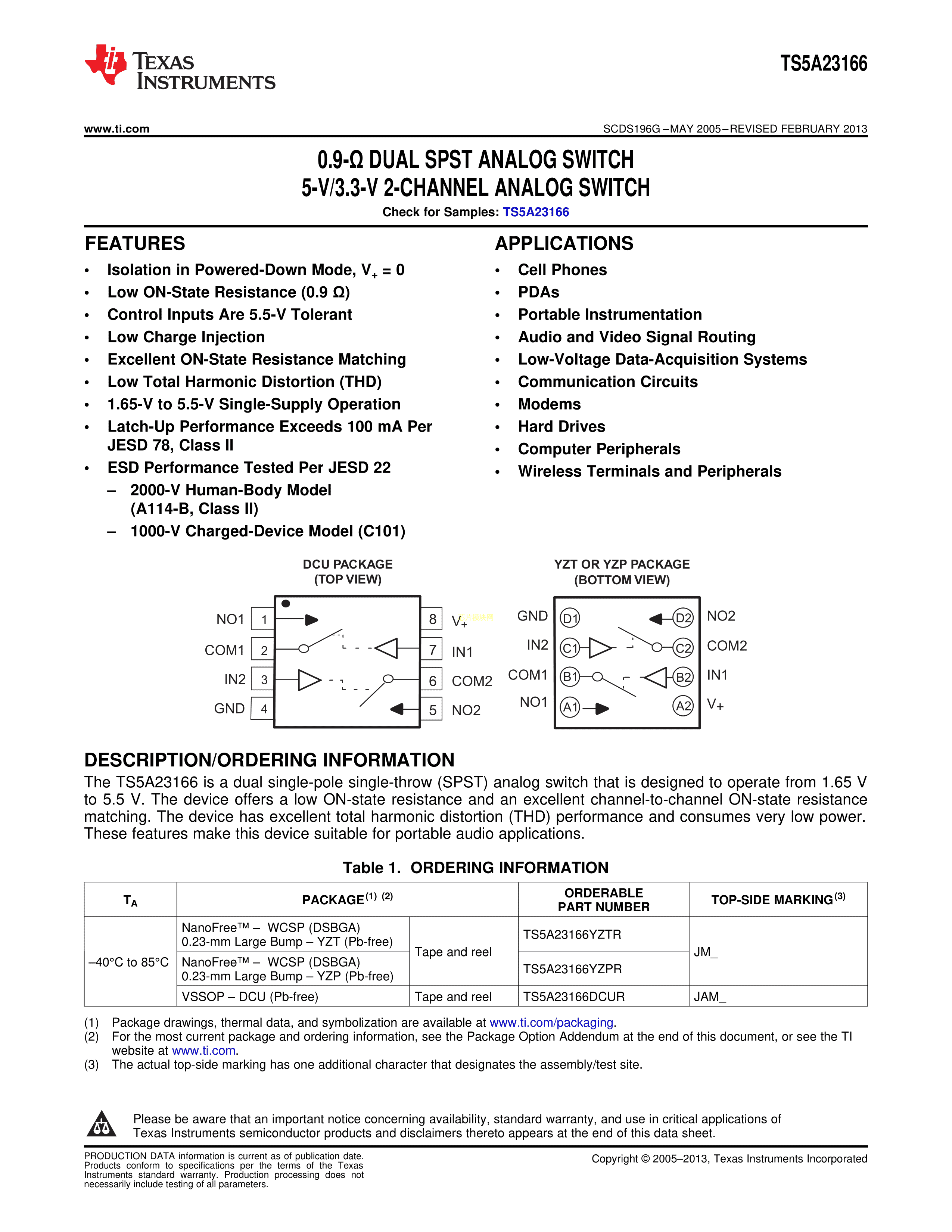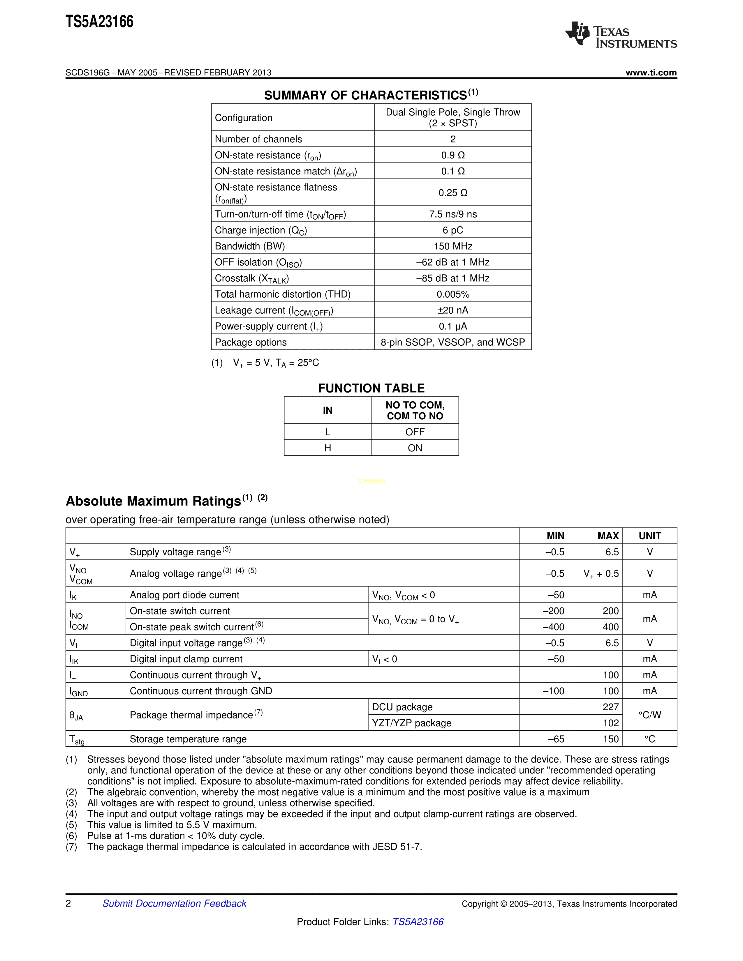 TS5A23166DCUR数据手册US8封装TI(德州仪器)PDF规格书,中英文下载