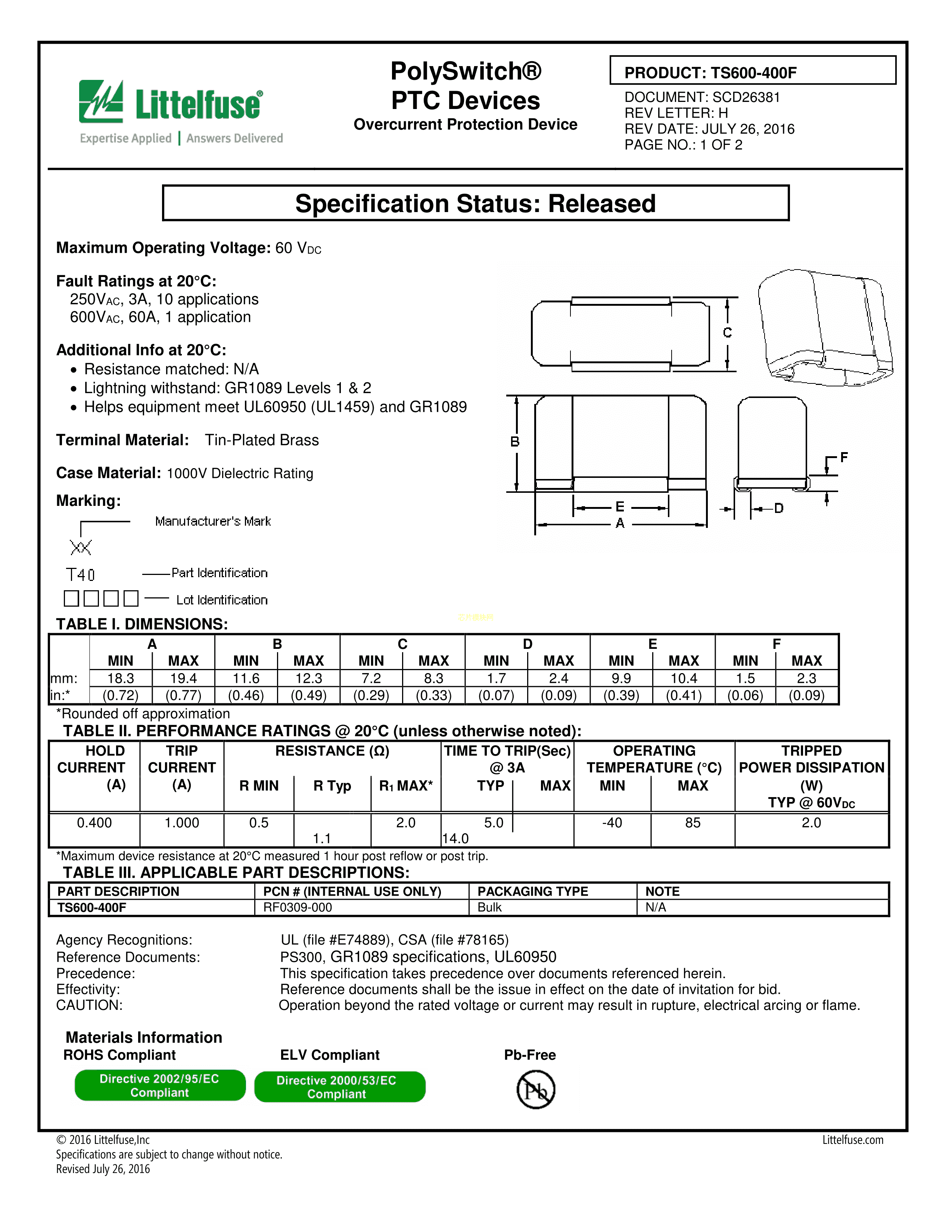 TS600-400F-2数据手册SMD封装Littelfuse(美国力特)PDF规格书,中英文下载