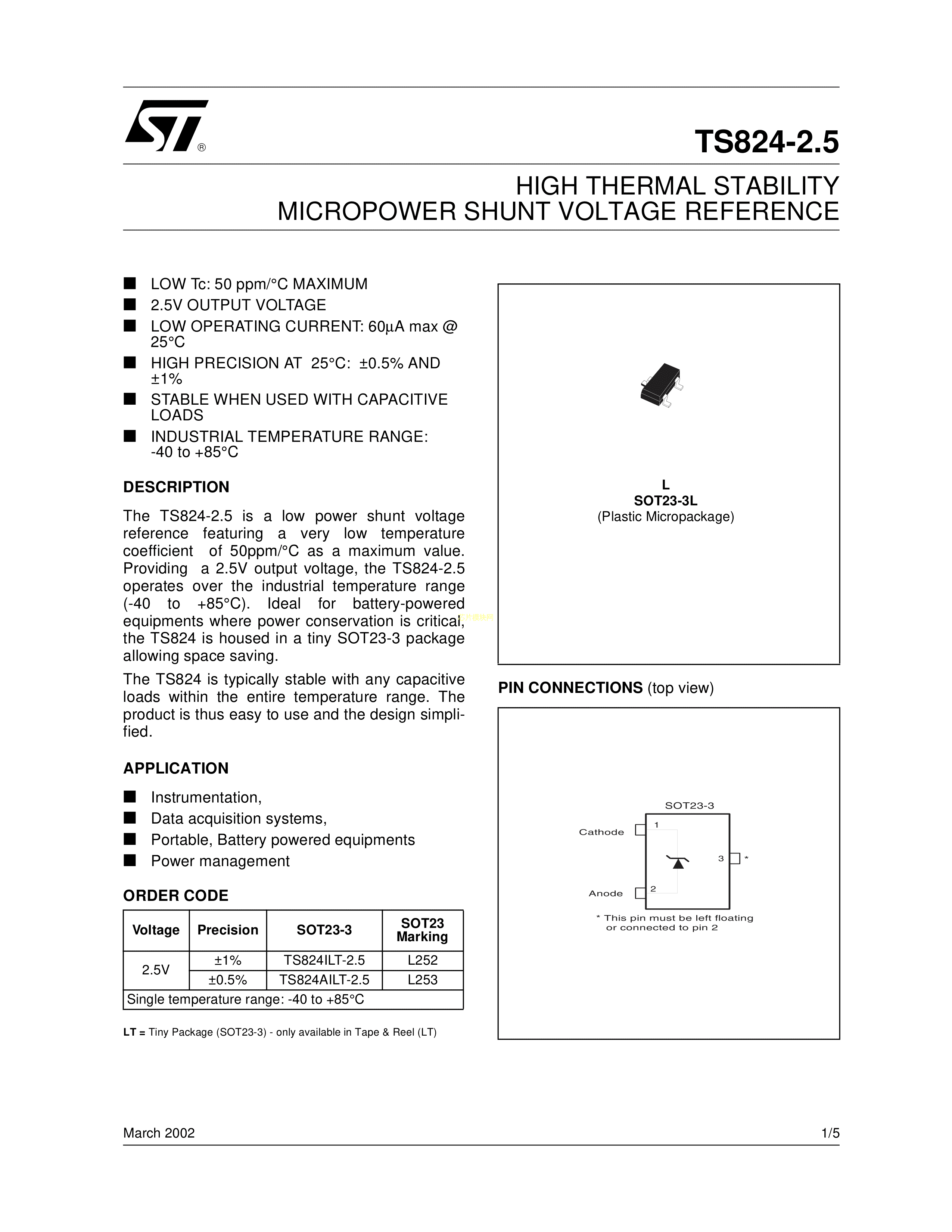 TS824AILT-2.5数据手册SOT-23-3封装ST(意法半导体)PDF规格书,中英文下载