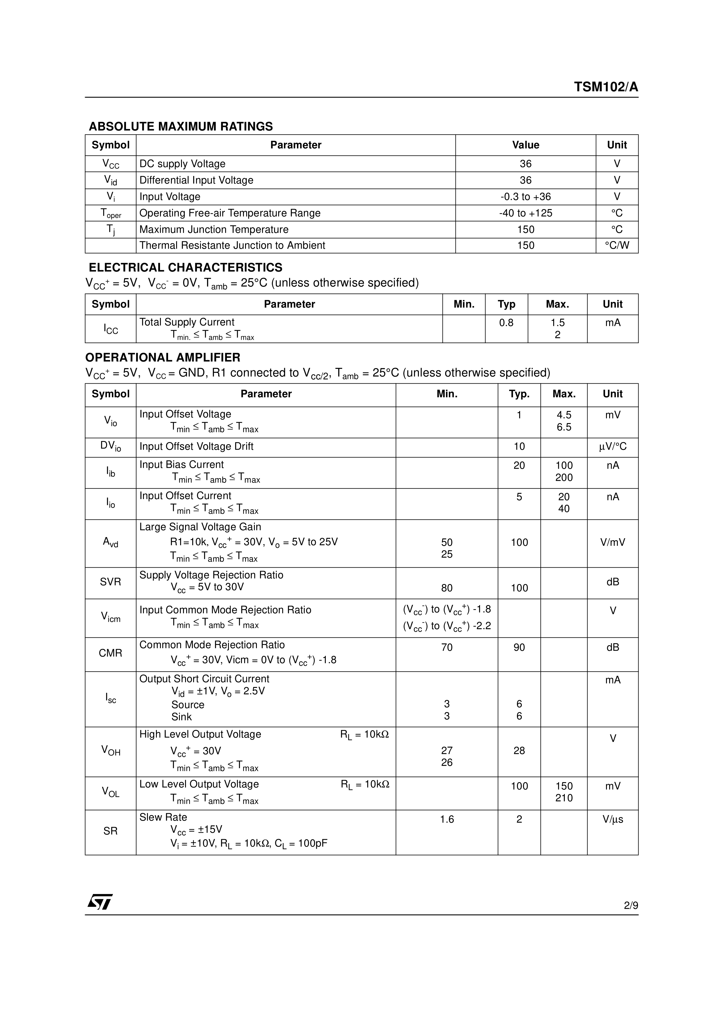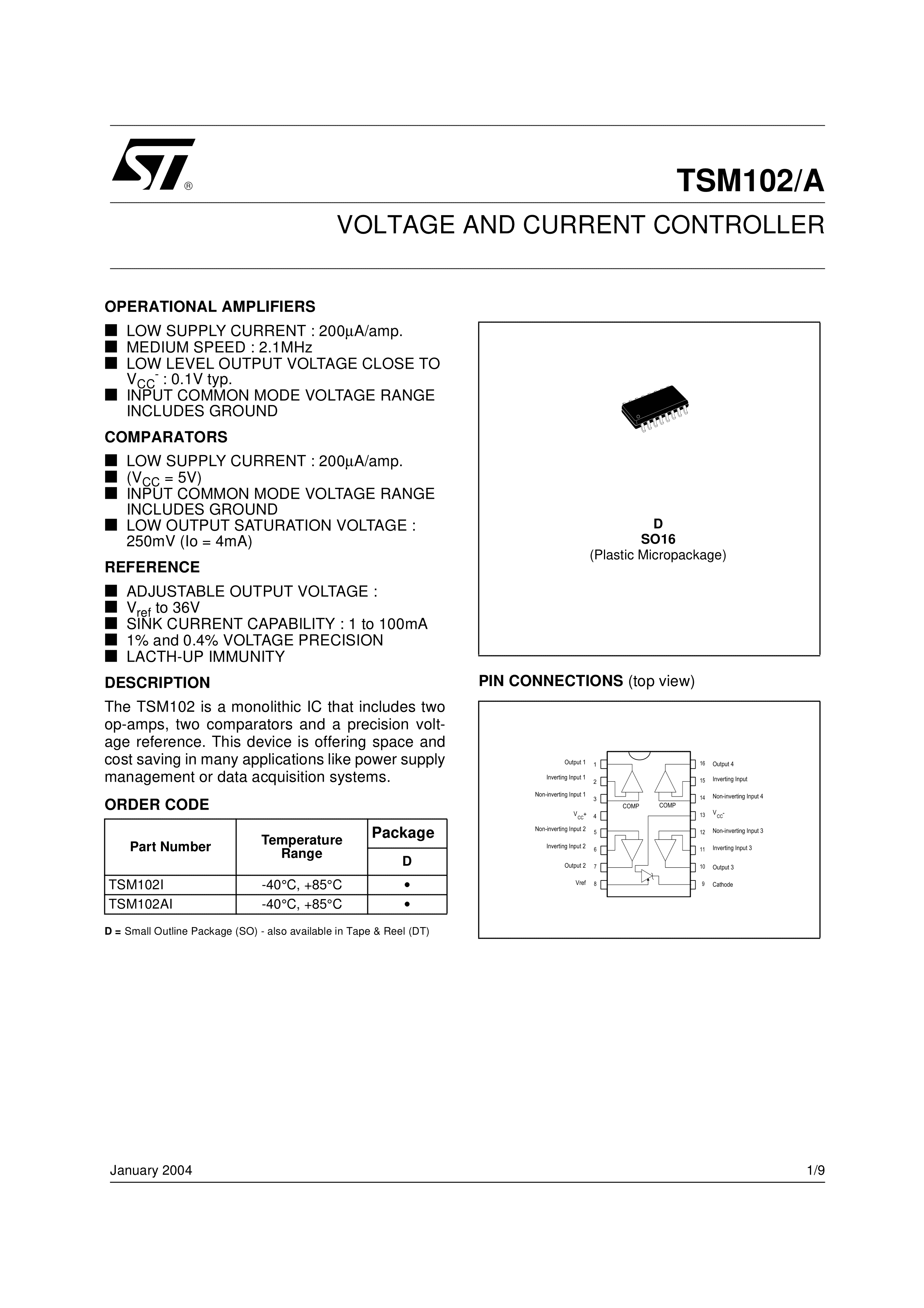 TSM102AID数据手册SO-16封装ST(意法半导体)PDF规格书,中英文下载