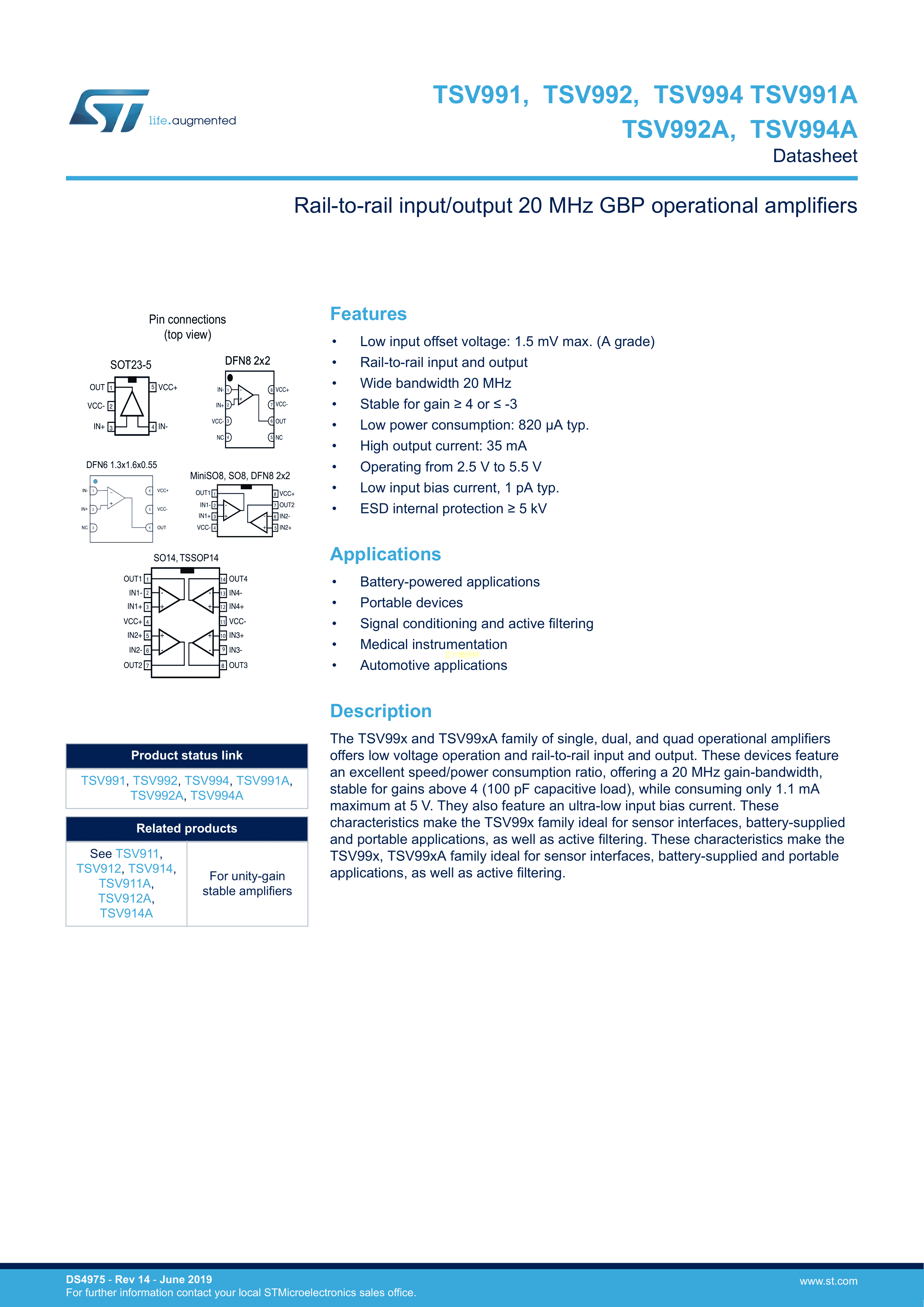 TSV992AIST数据手册MiniSO-8封装ST(意法半导体)PDF规格书,中英文下载