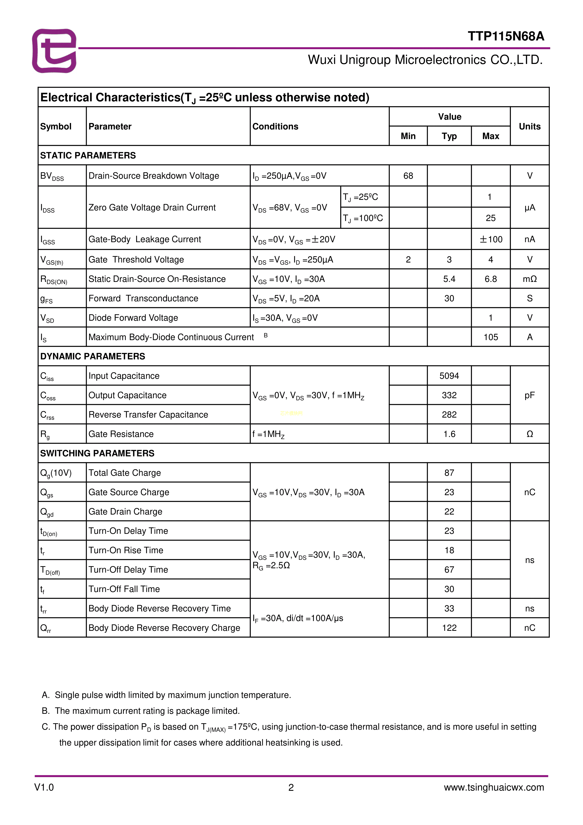 TTP115N68A数据手册TO-220封装无锡紫光微PDF规格书,中英文下载