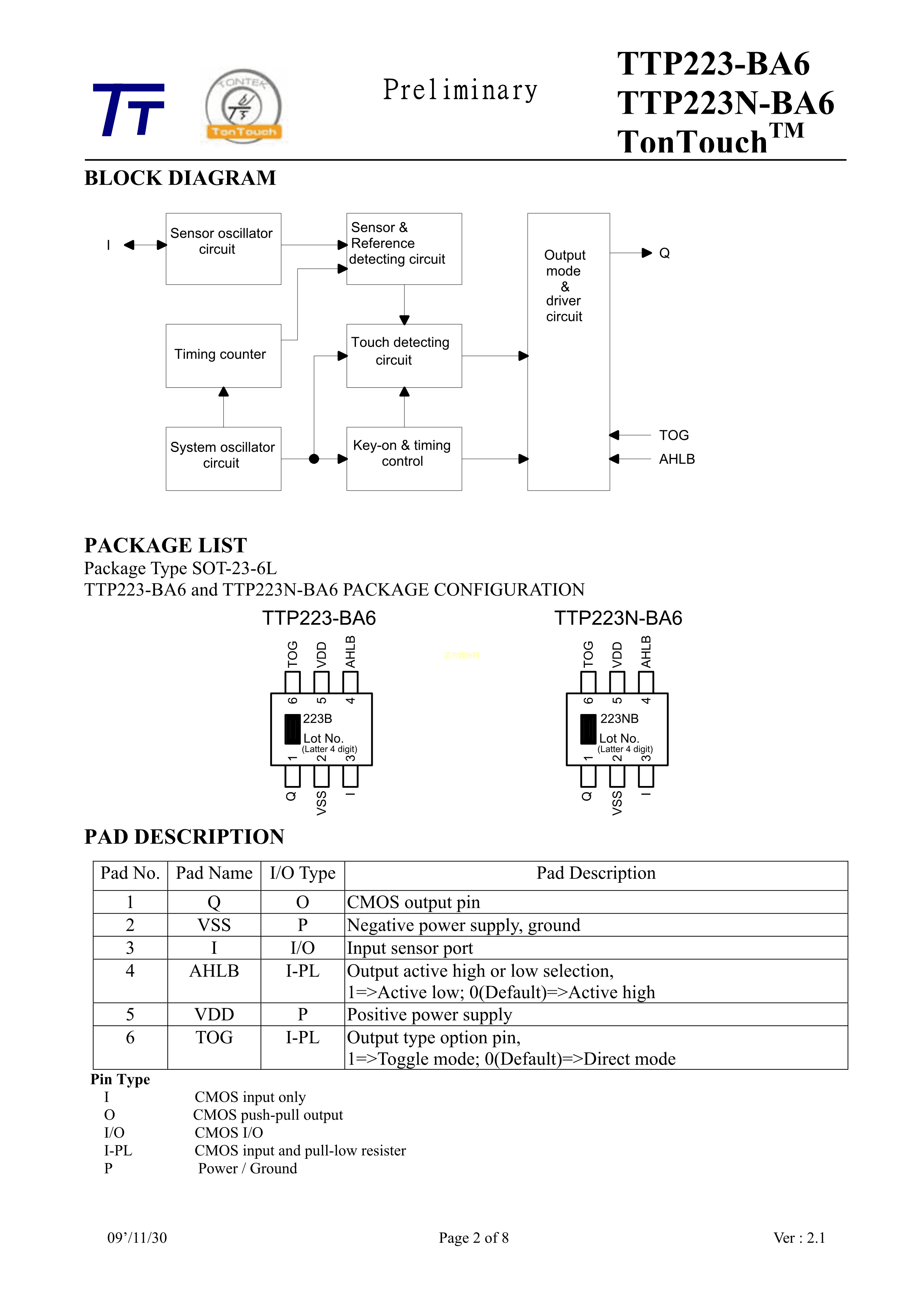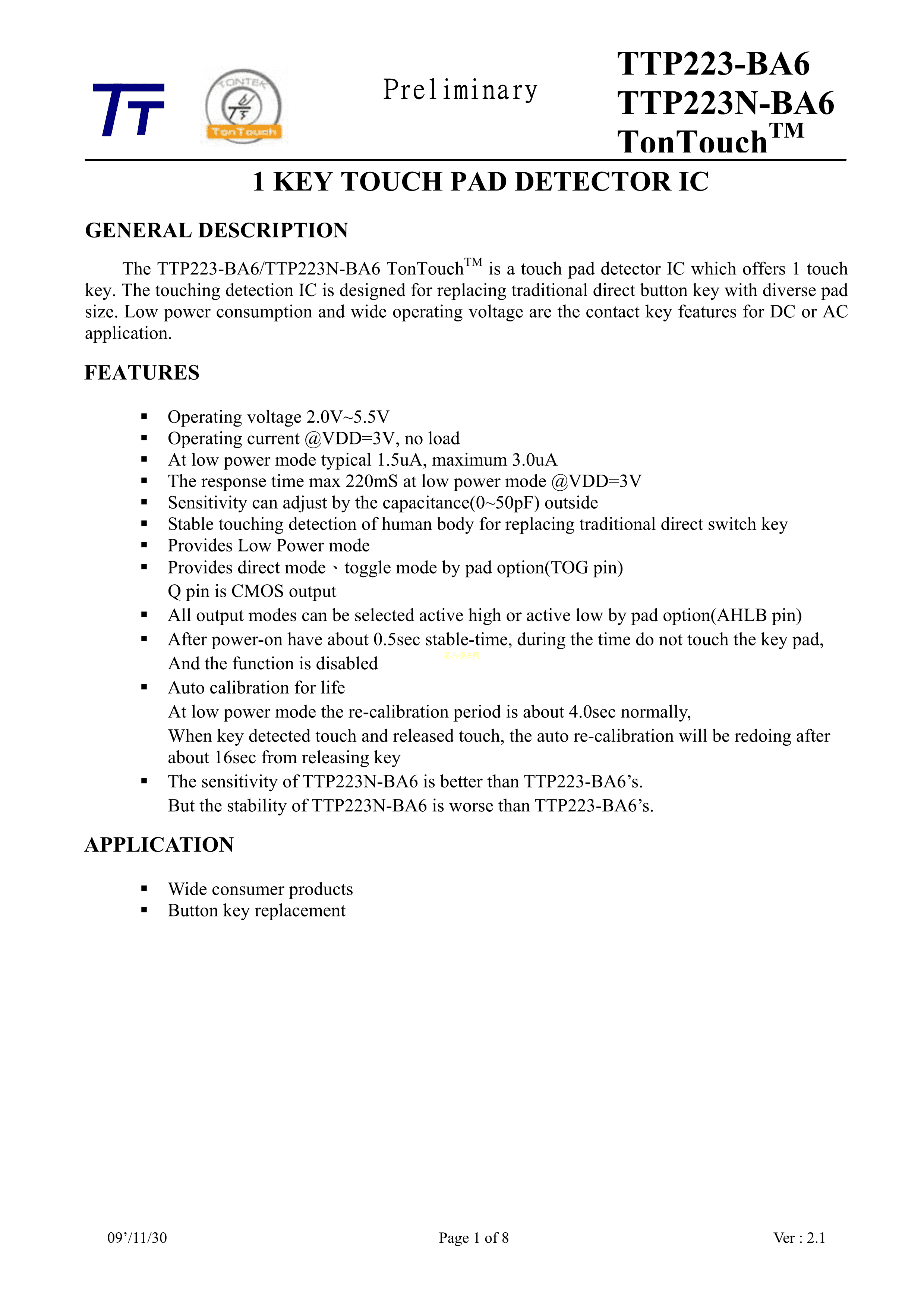 TTP223-BA6PDF规格书,中英文下载
