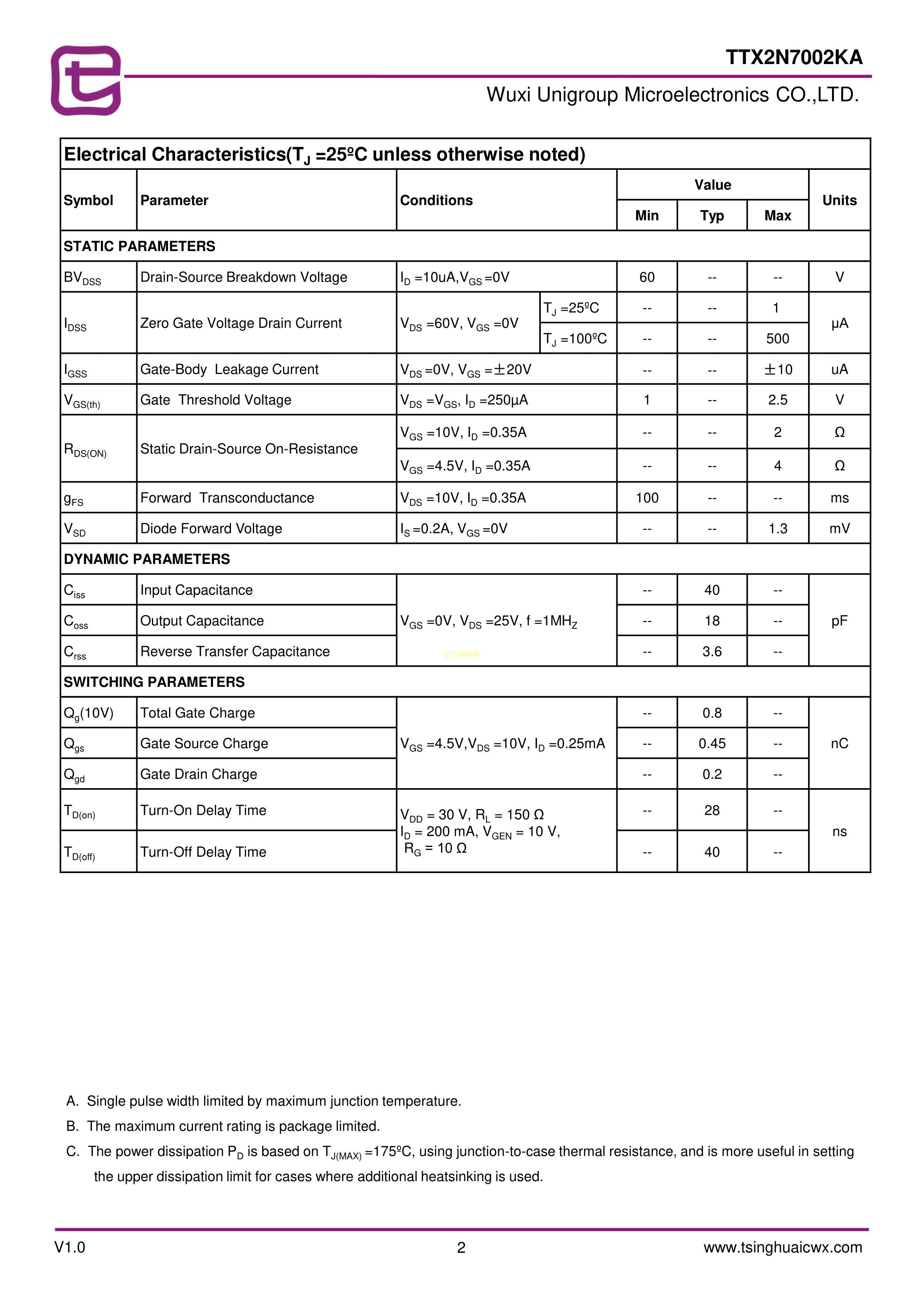 TTX2N7002KA数据手册SOT-23-3L封装无锡紫光微PDF规格书,中英文下载