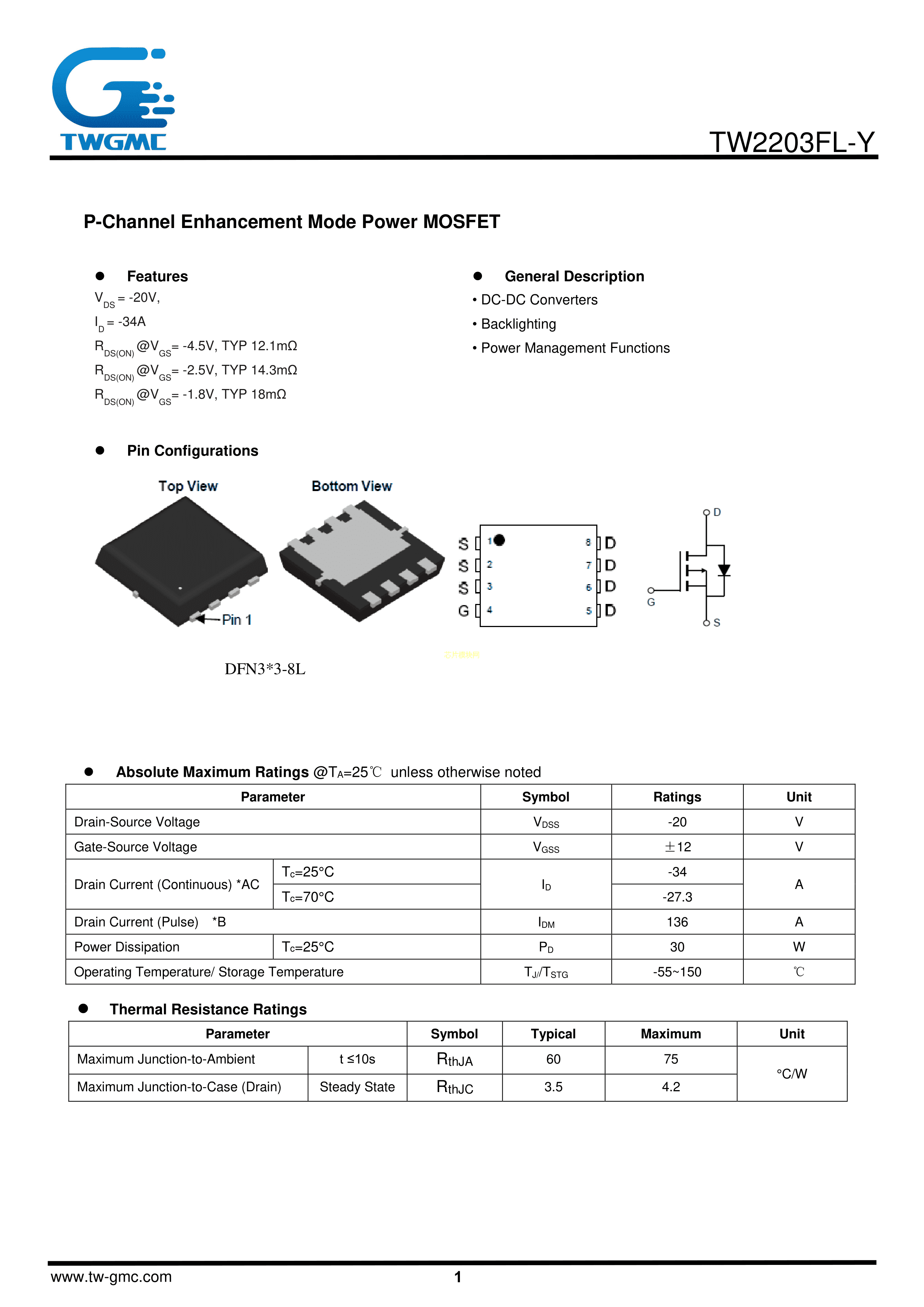 TW2203FL-Y数据手册DFN3x3-8L封装TWGMC(台湾迪嘉)PDF规格书,中英文下载