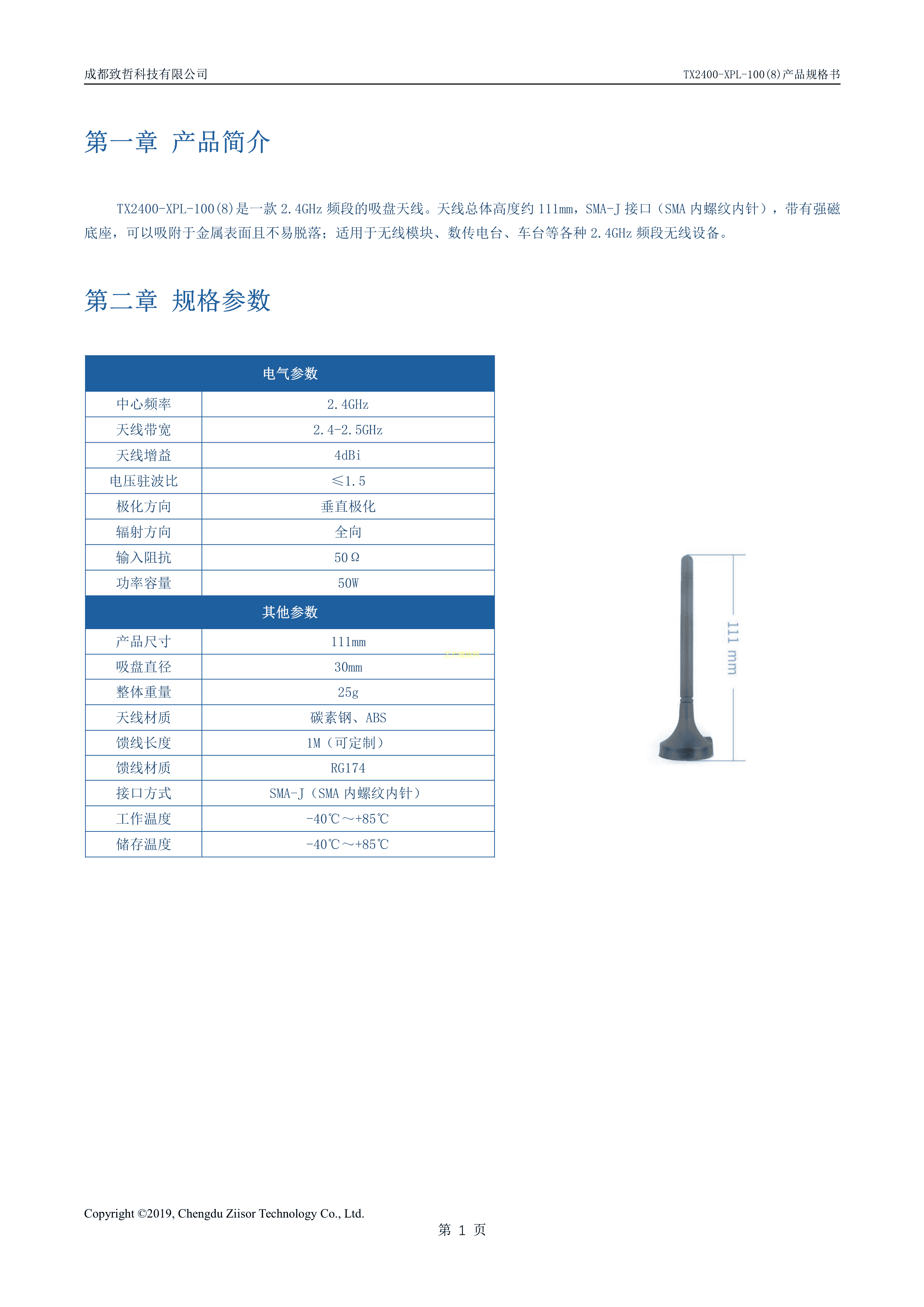 TX2400-XPL-100(8)数据手册111mmx30mm封装Ziisor(致哲)PDF规格书,
