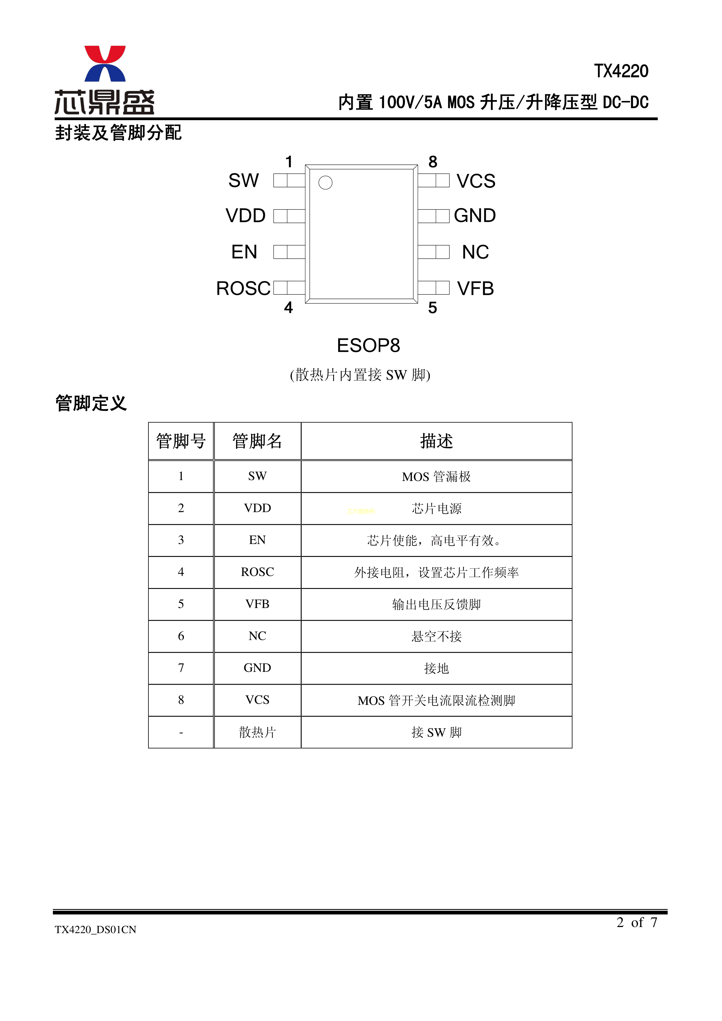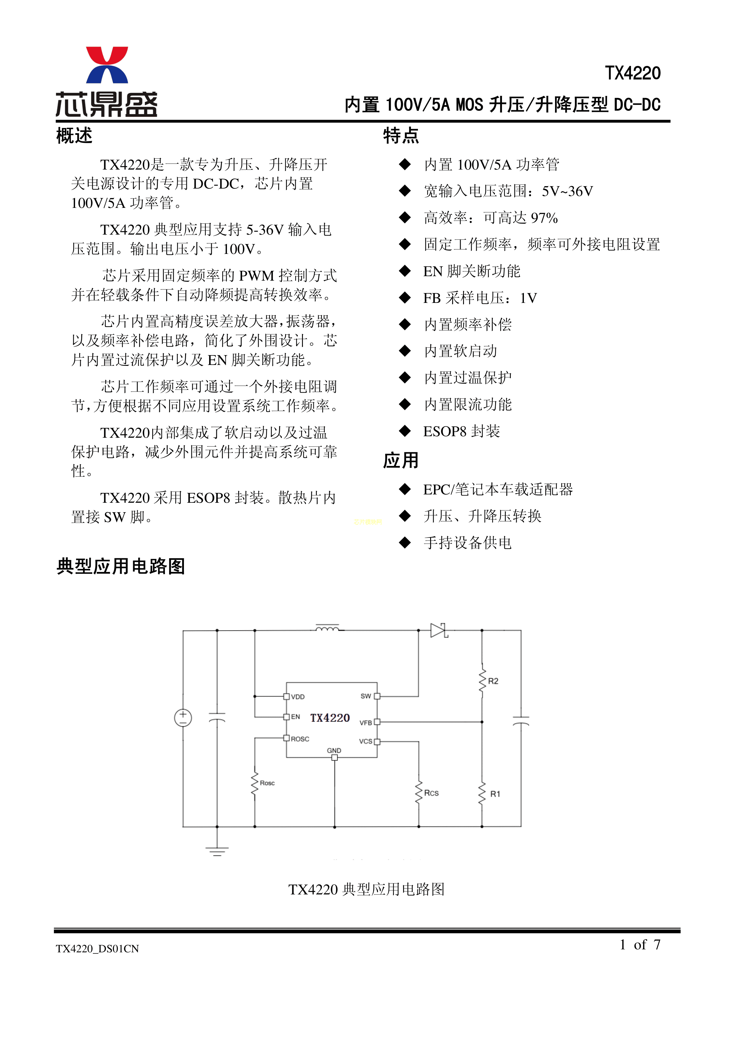 TX4220数据手册ESOP-8封装XDS(芯鼎盛)PDF规格书,中英文下载