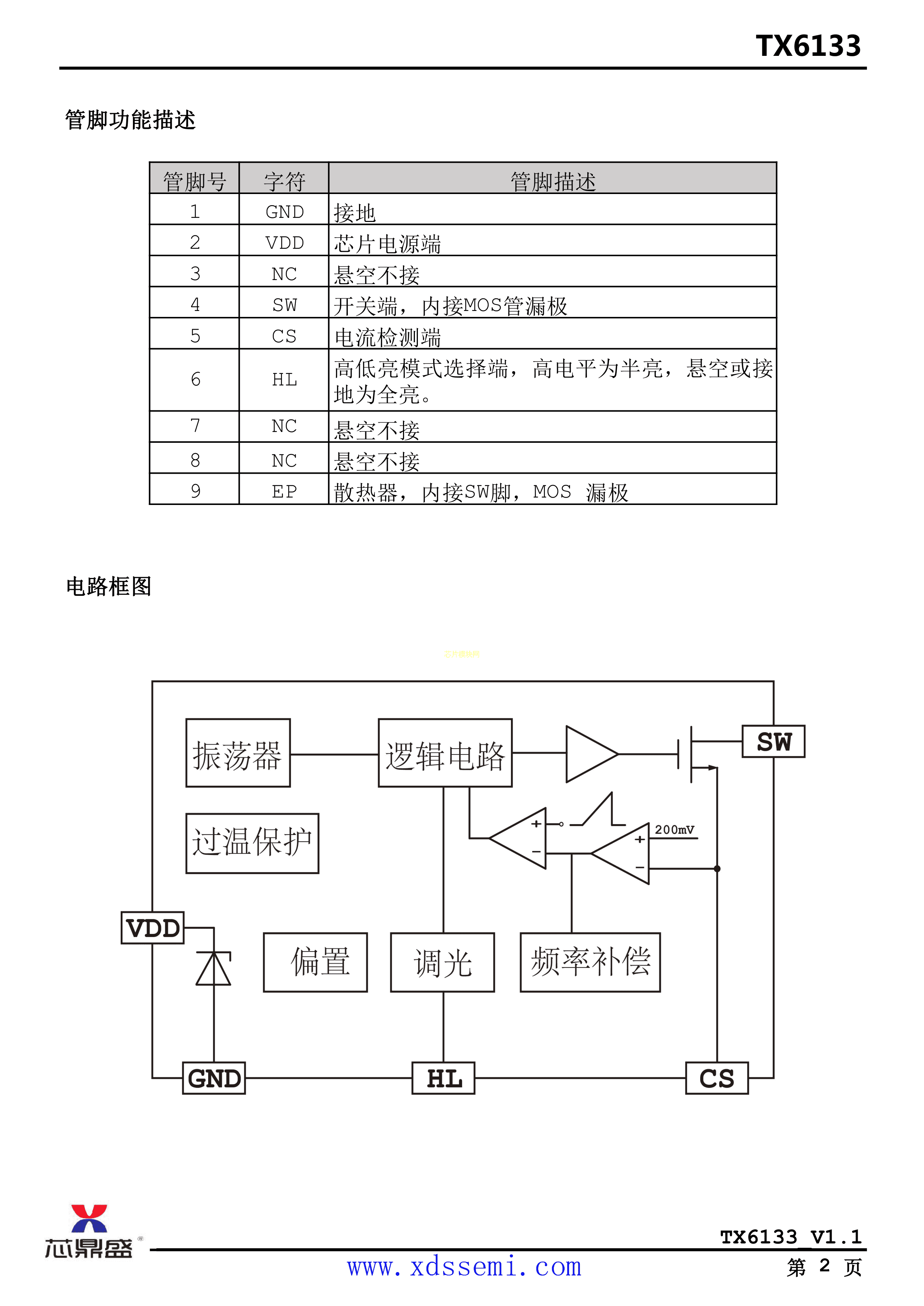 TX6133数据手册ESOP-8封装XDS(芯鼎盛)PDF规格书,中英文下载