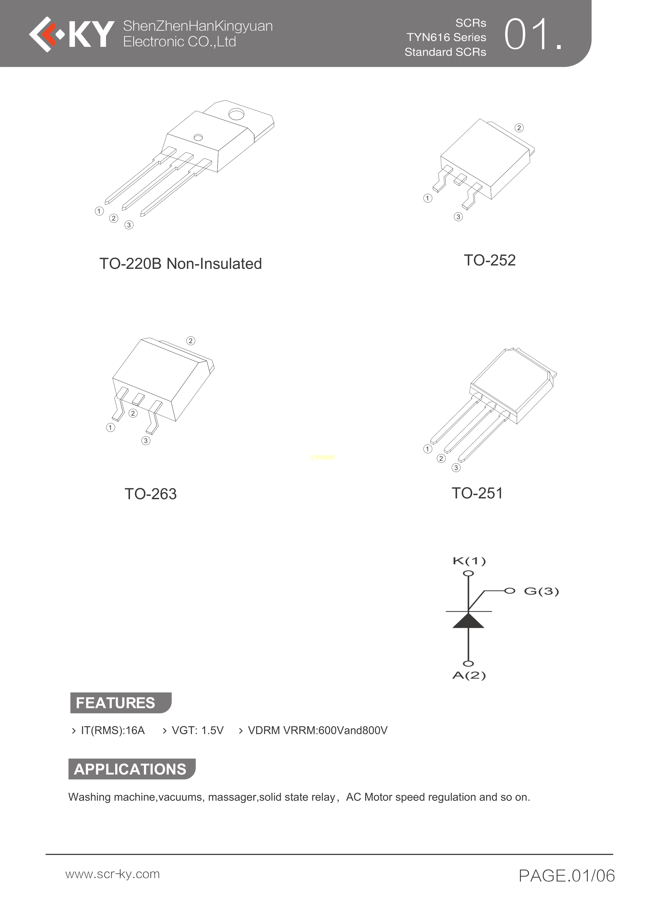 TYN616数据手册TO-220B封装KY(韩景元)PDF规格书,中英文下载
