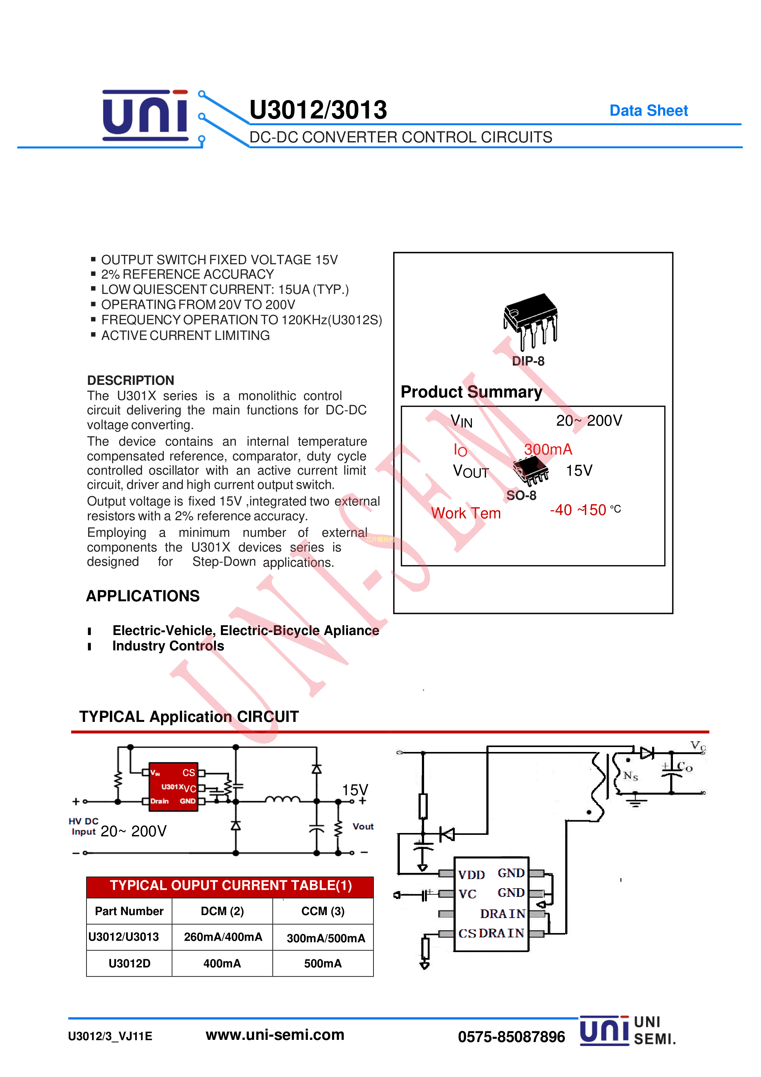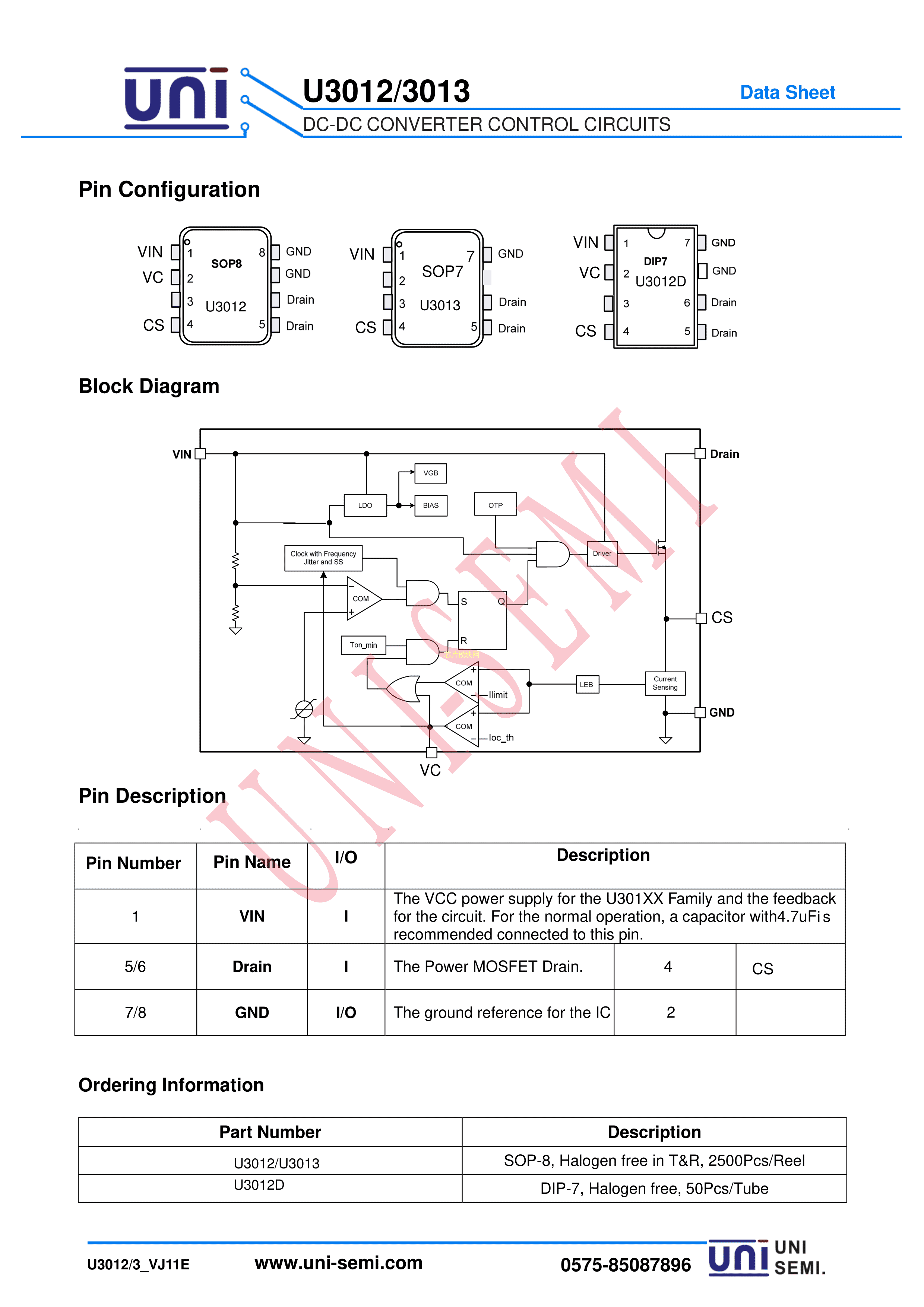 U3012数据手册-封装UNI-SEMI(宇力半导体)PDF规格书,中英文下载