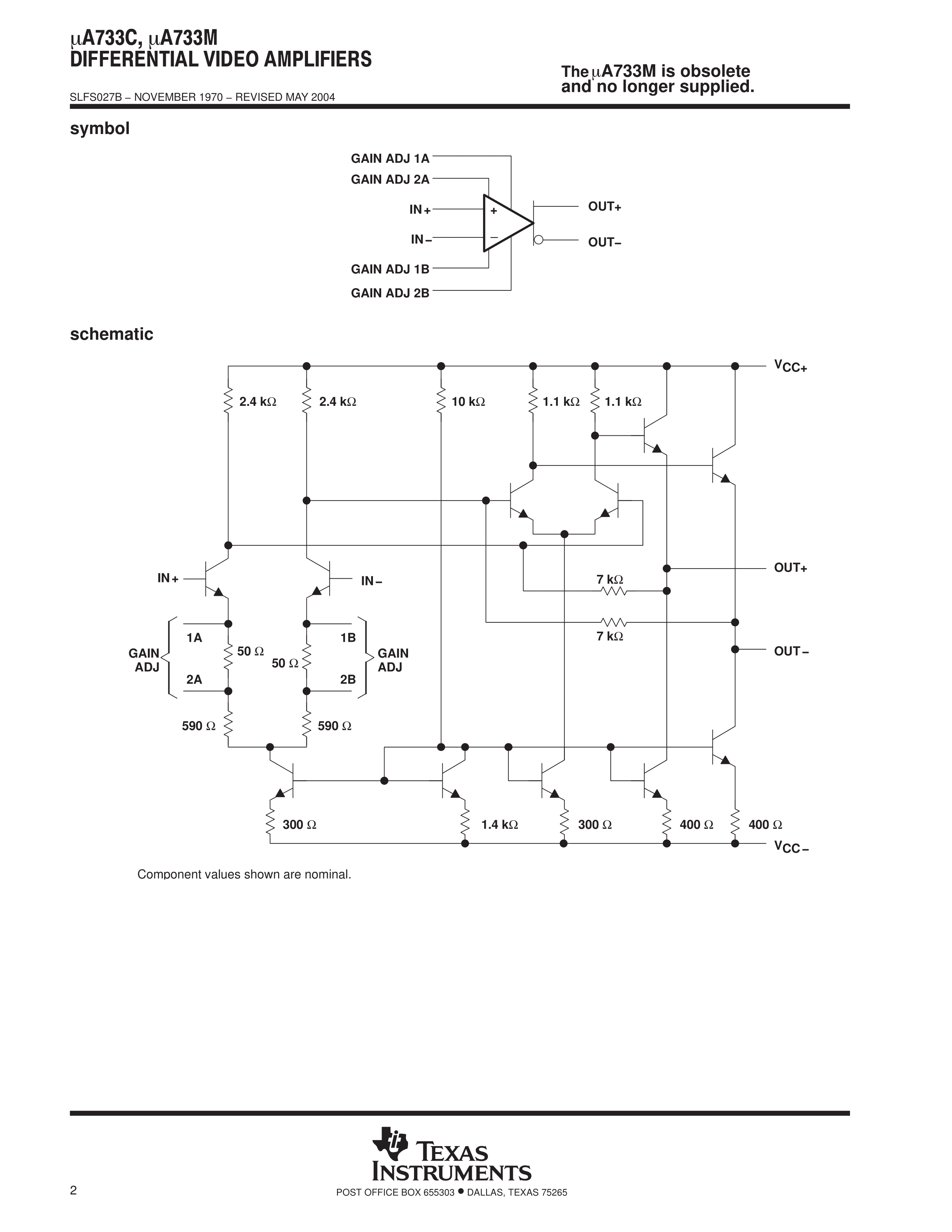 UA733CD数据手册SOIC-14封装TI(德州仪器)PDF规格书,中英文下载