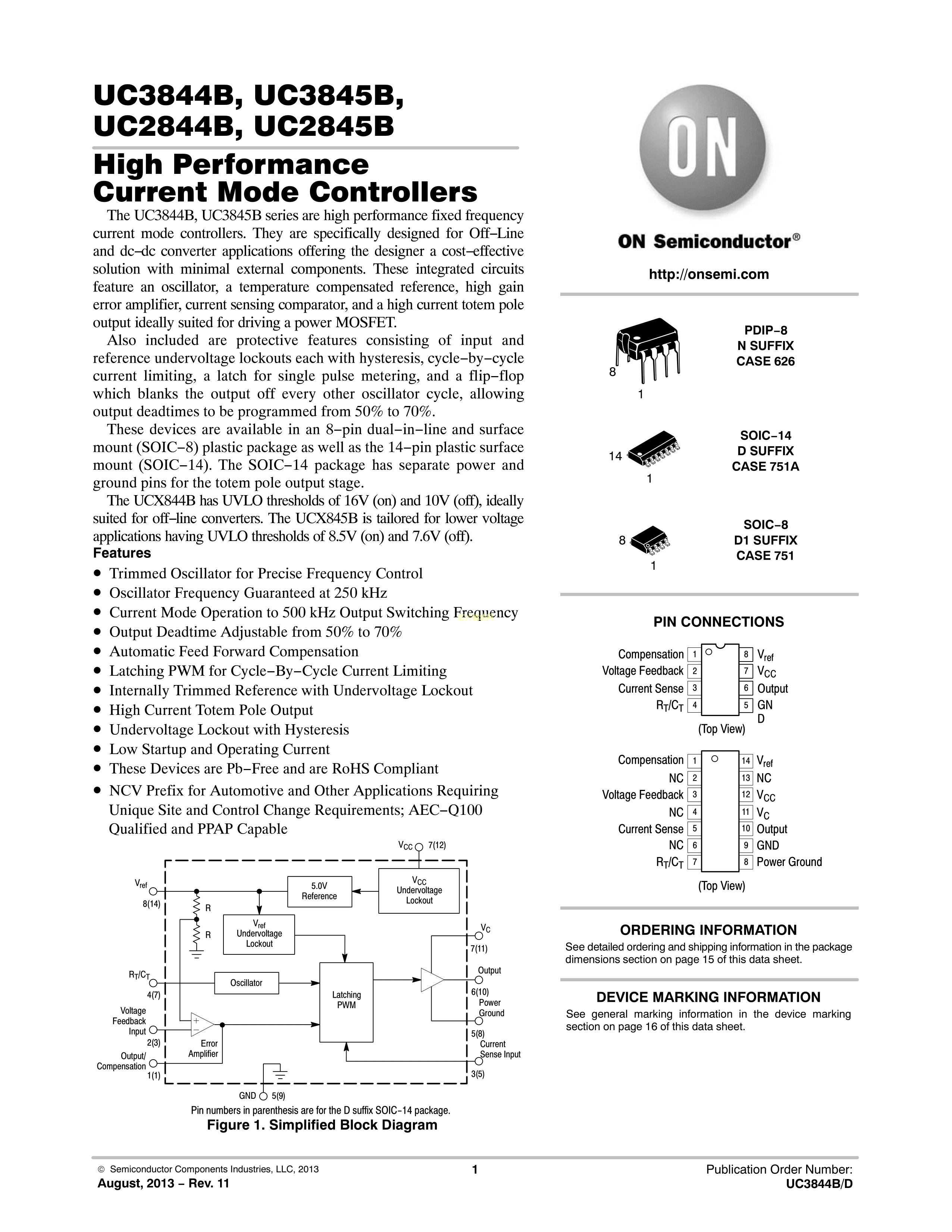 UC3844BVDG数据手册SOIC-14封装onsemi(安森美)PDF规格书,中英文下载