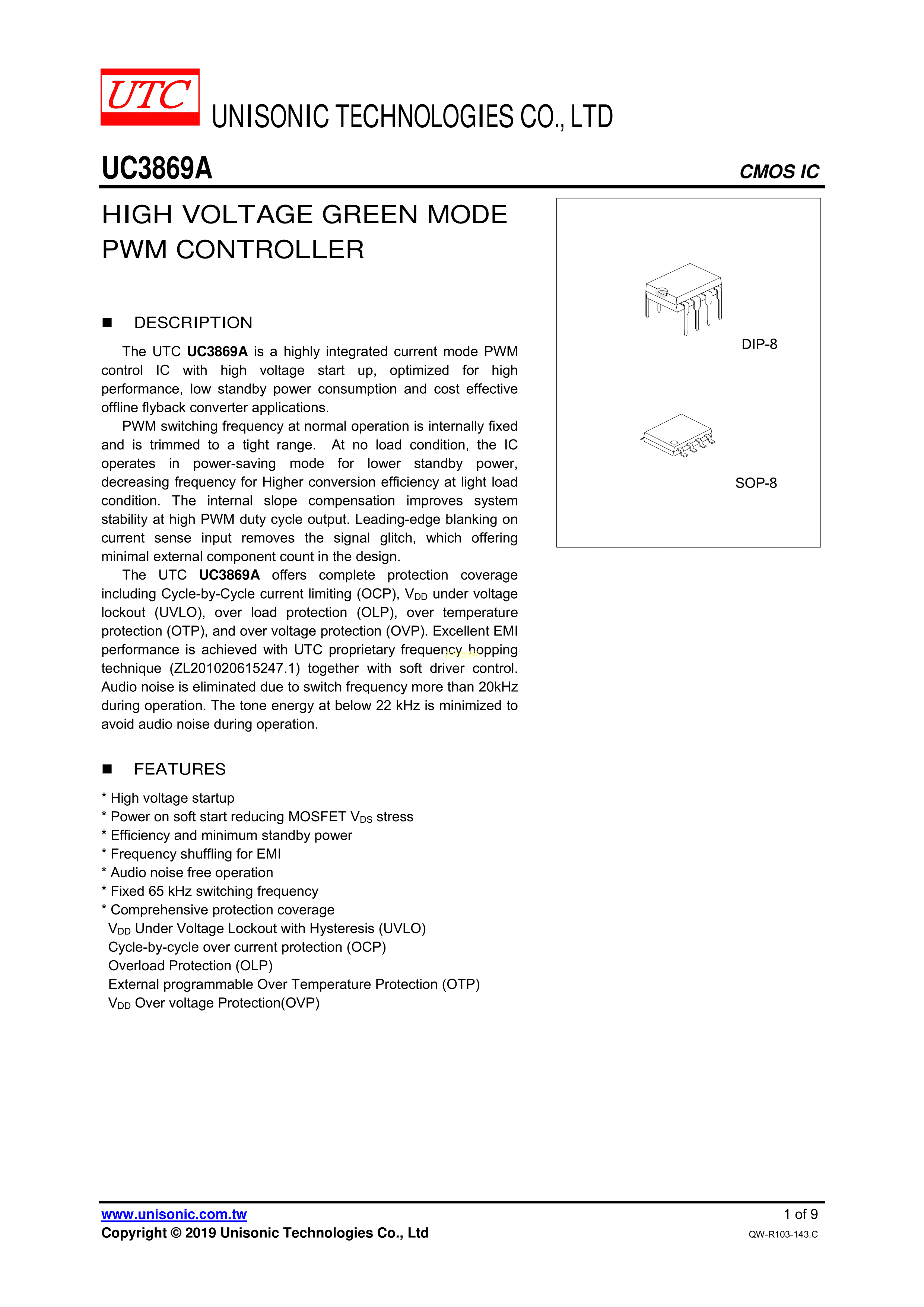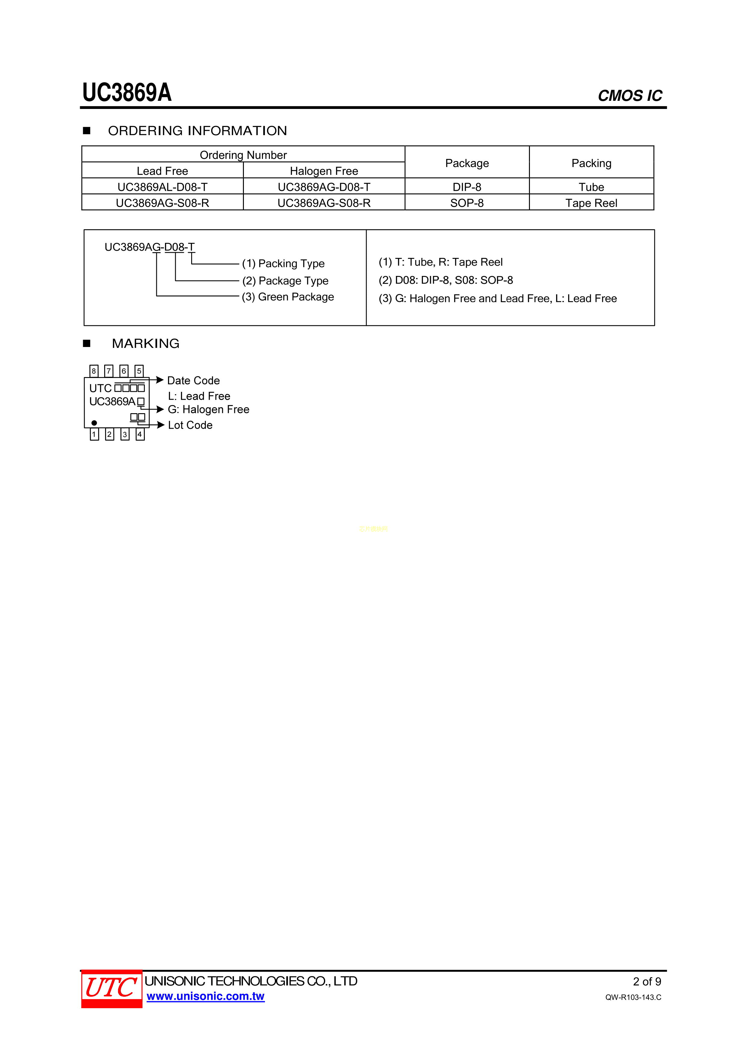 UC3869AG-S08-R数据手册SOP-8封装UTC(友顺)PDF规格书,中英文下载