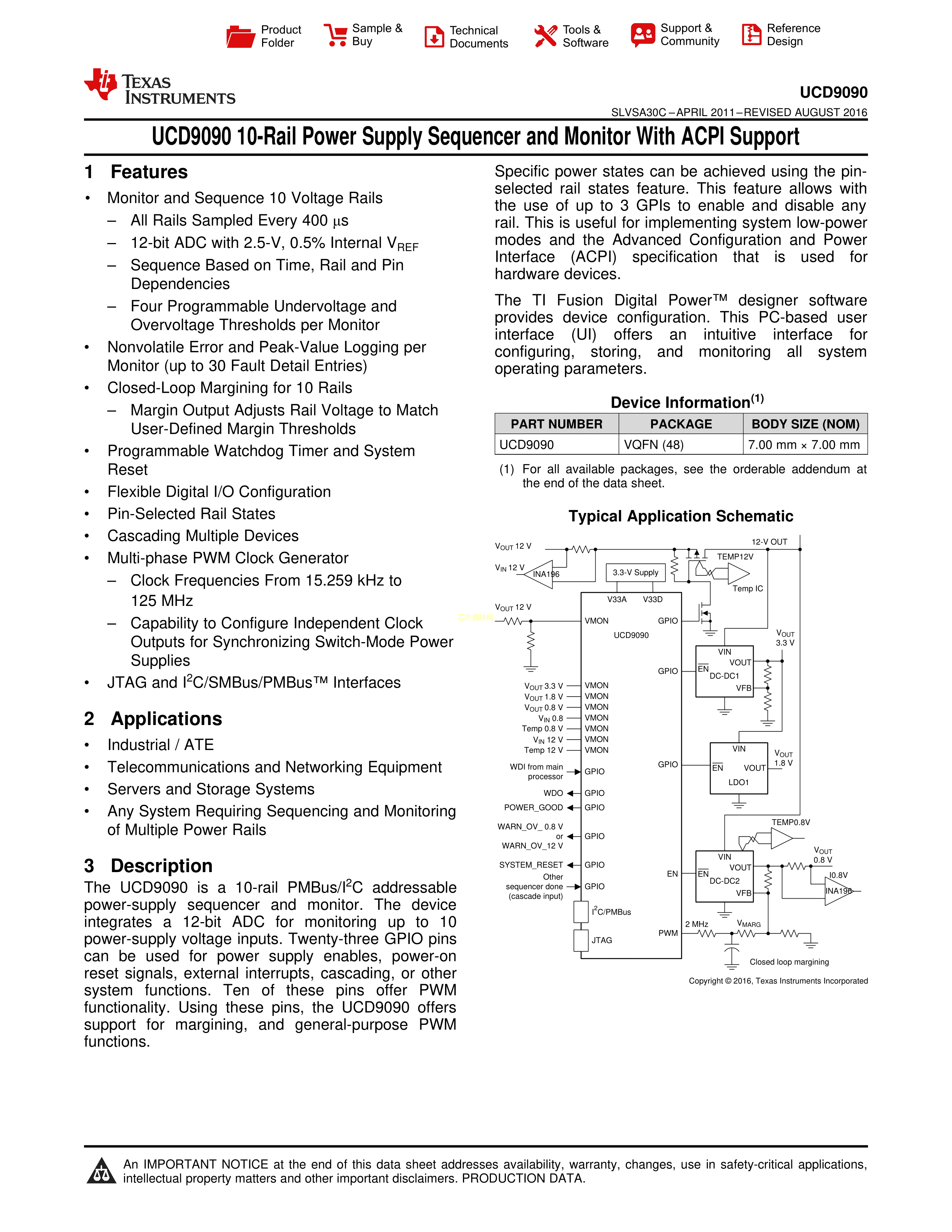 UCD9090RGZT数据手册VQFN-48_7x7x05P封装TI(德州仪器)PDF规格书,中英文