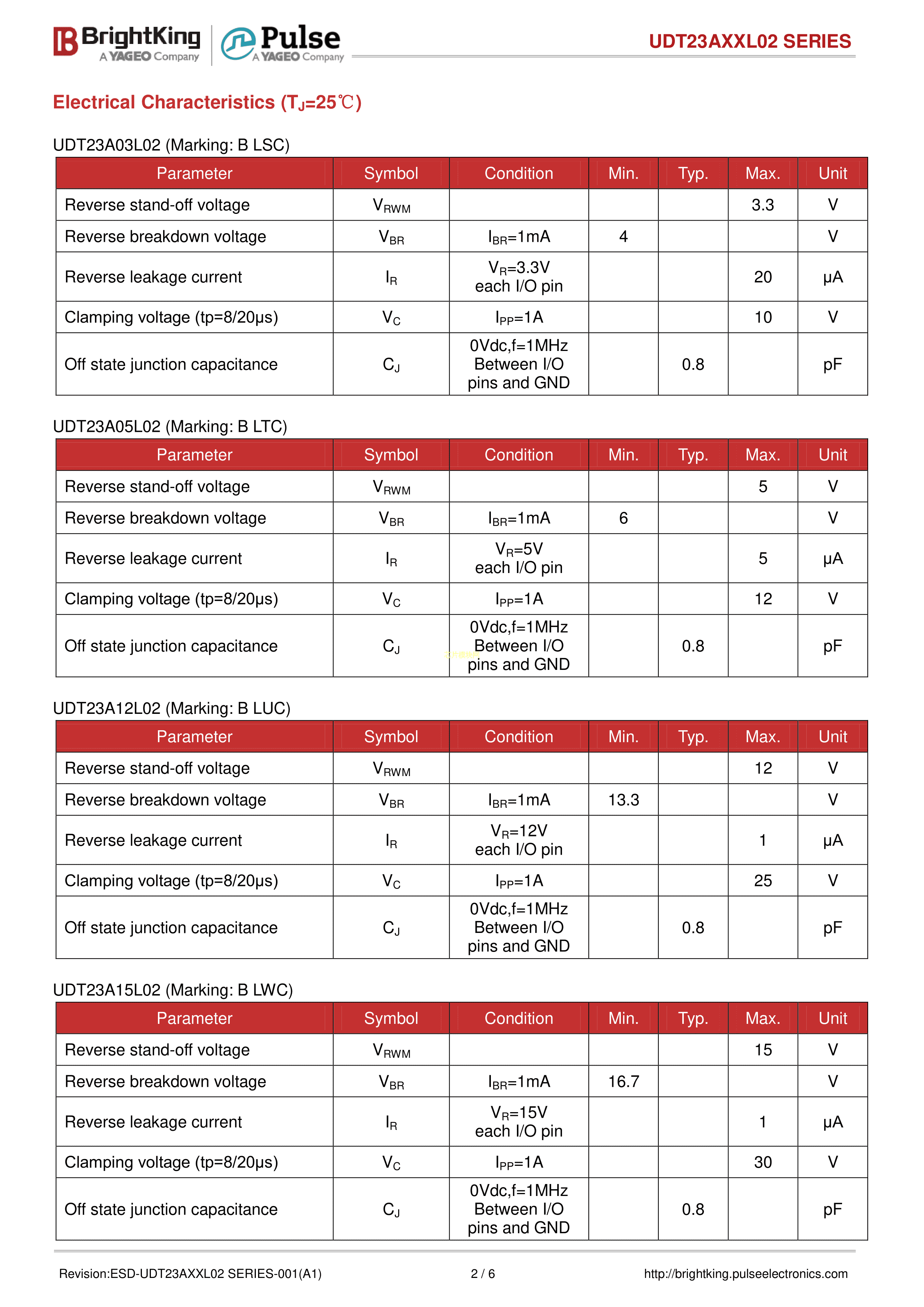 UDT23A12L02数据手册SOT-23封装Brightking(台湾君耀)PDF规格书,中英文下载