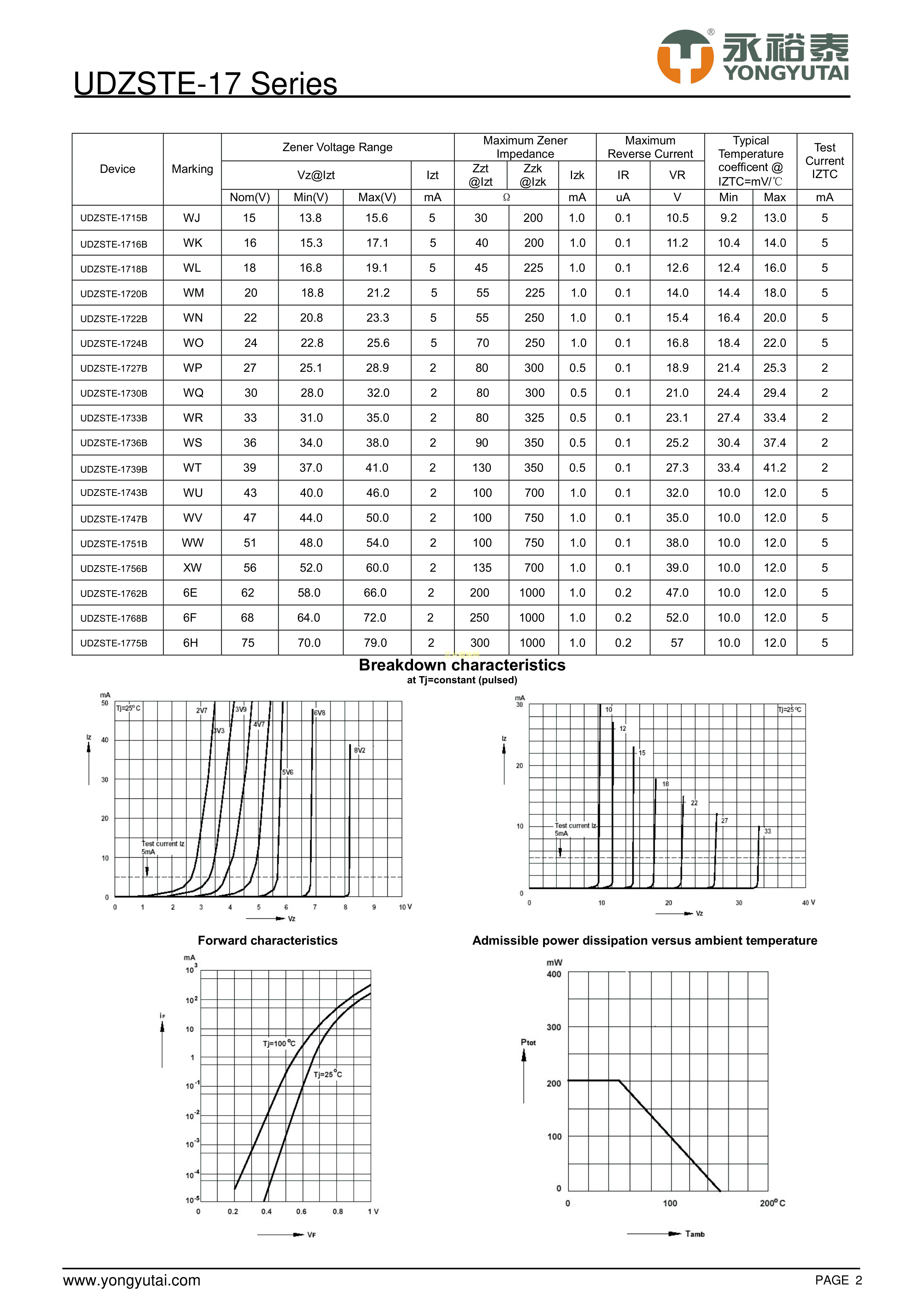 UDZSTE-1718B数据手册SOD-323封装YONGYUTAI(永裕泰)PDF规格书,中英文下载