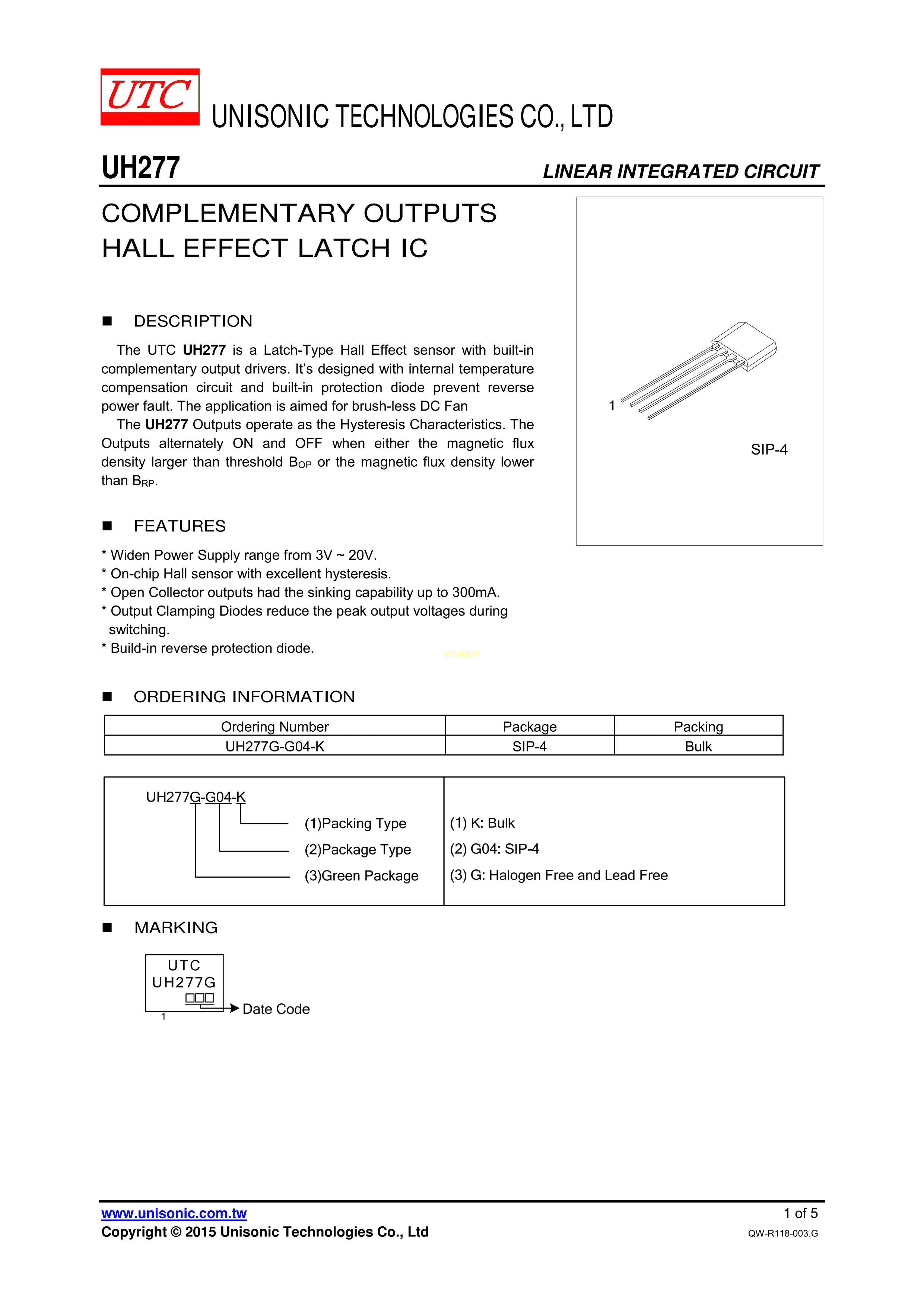 UH277G-G04-K数据手册SIP-4封装UTC(友顺)PDF规格书,中英文下载