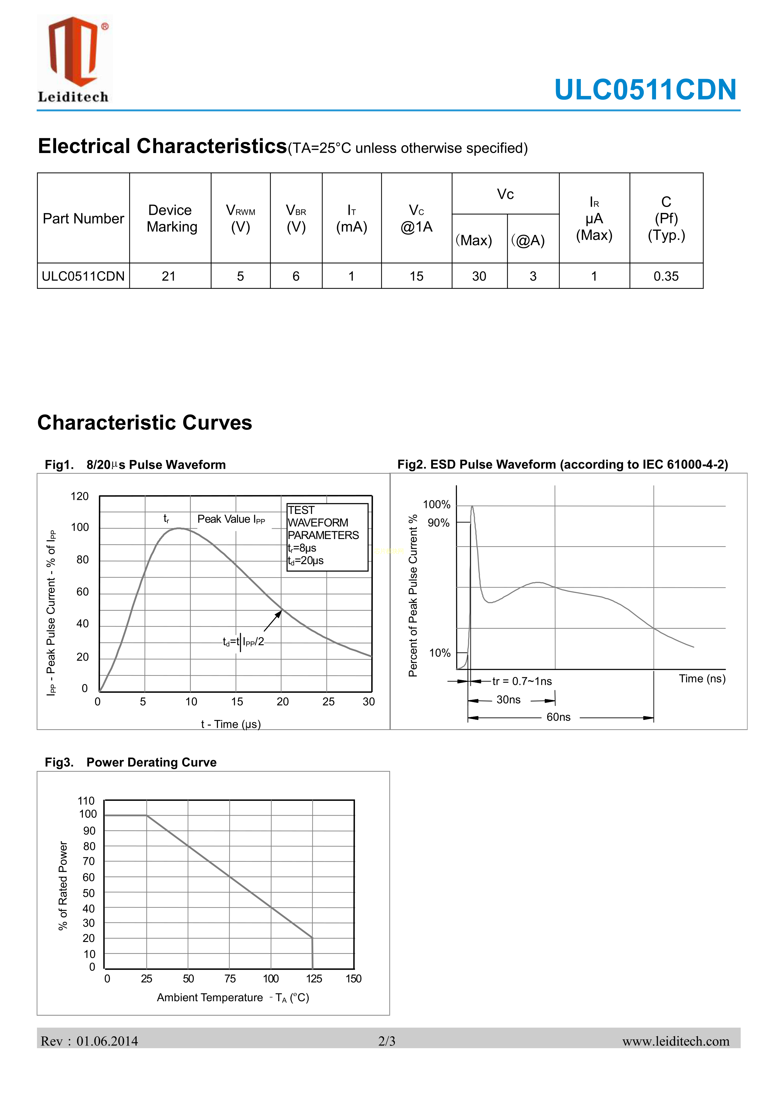 ULC0511CDN数据手册DFN1006封装Leiditech(雷卯电子)PDF规格书,中英文下载