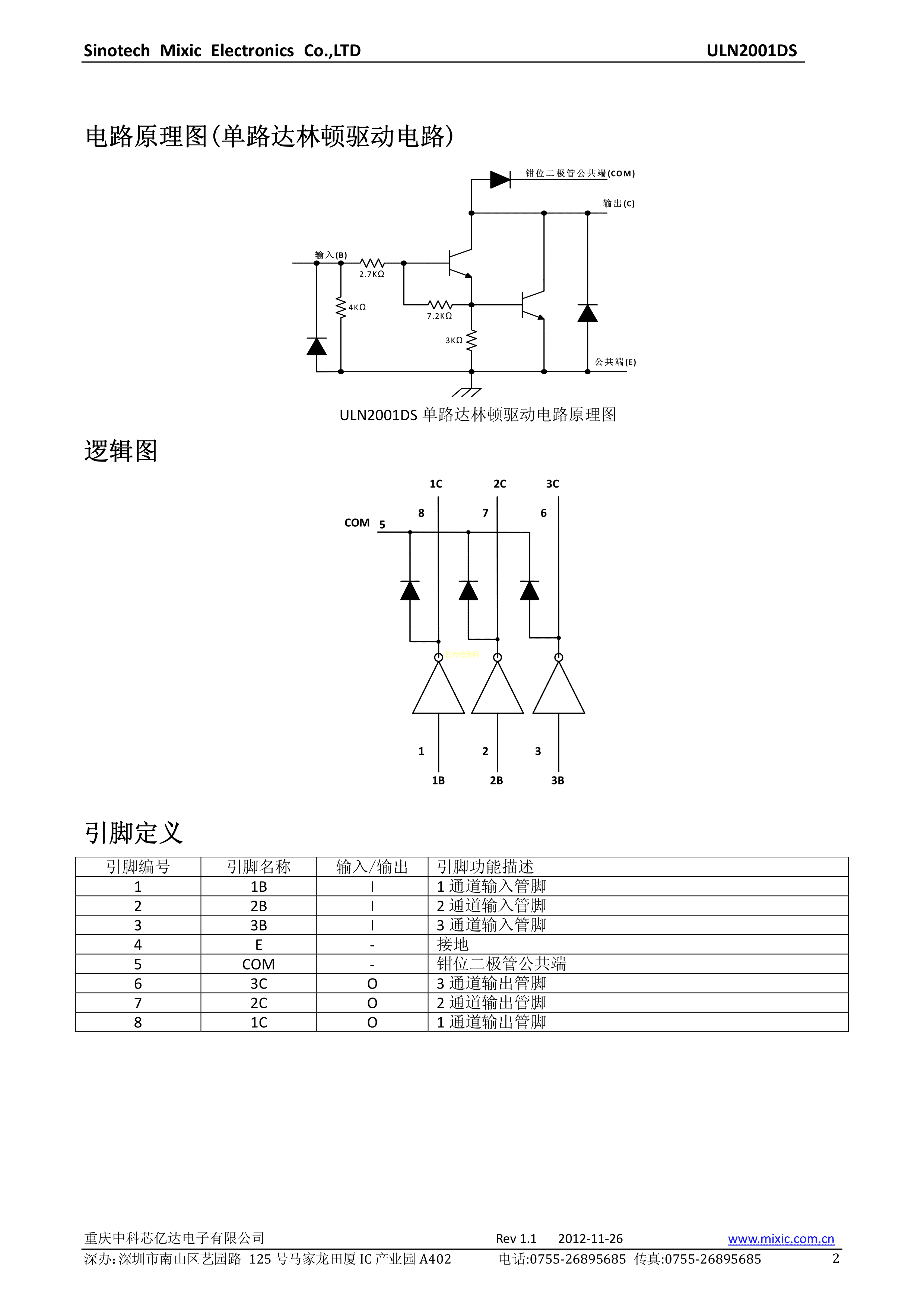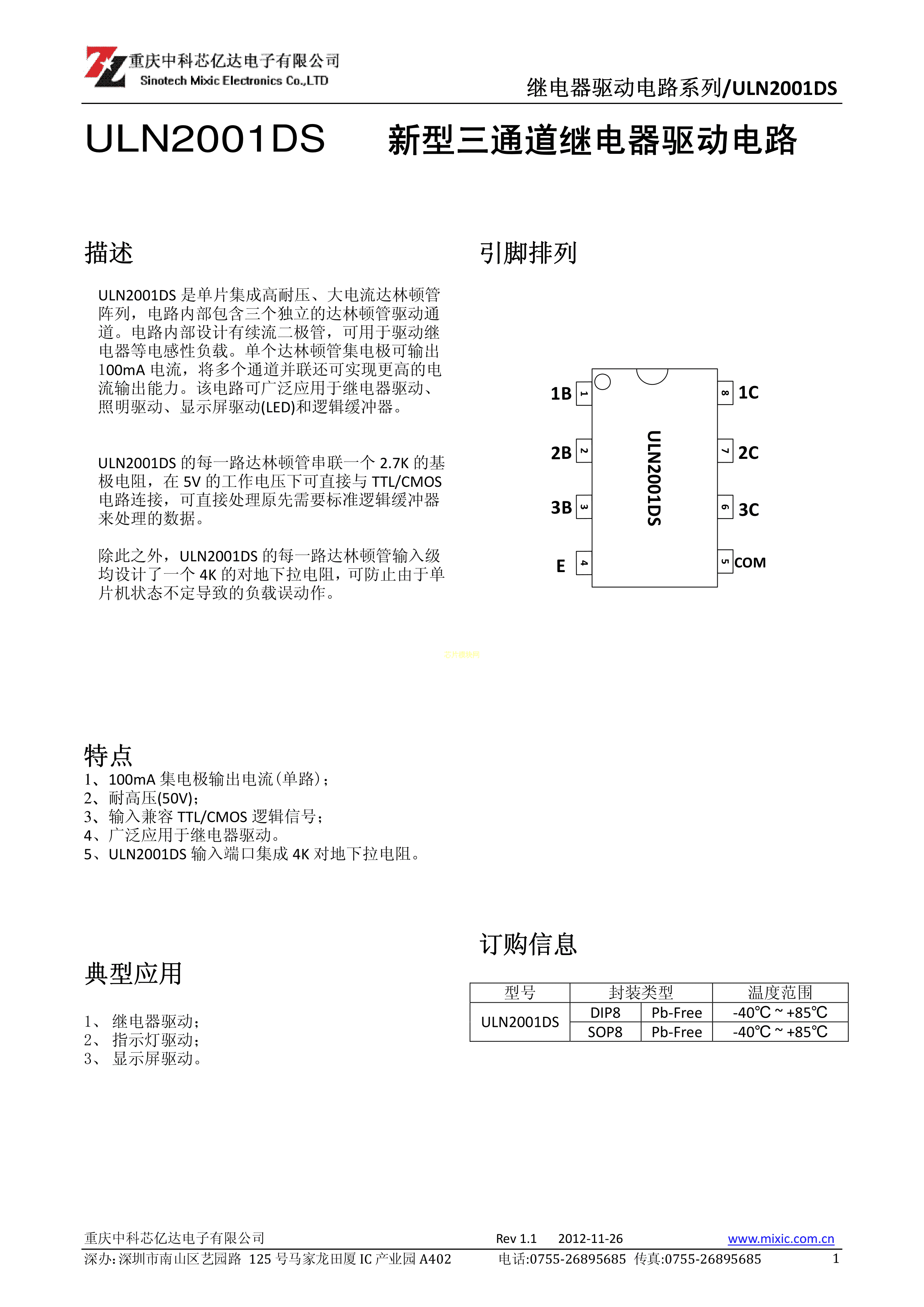 ULN2001DS数据手册SOP-8_150mil封装Mixic(中科芯亿达)PDF规格书,中英文下