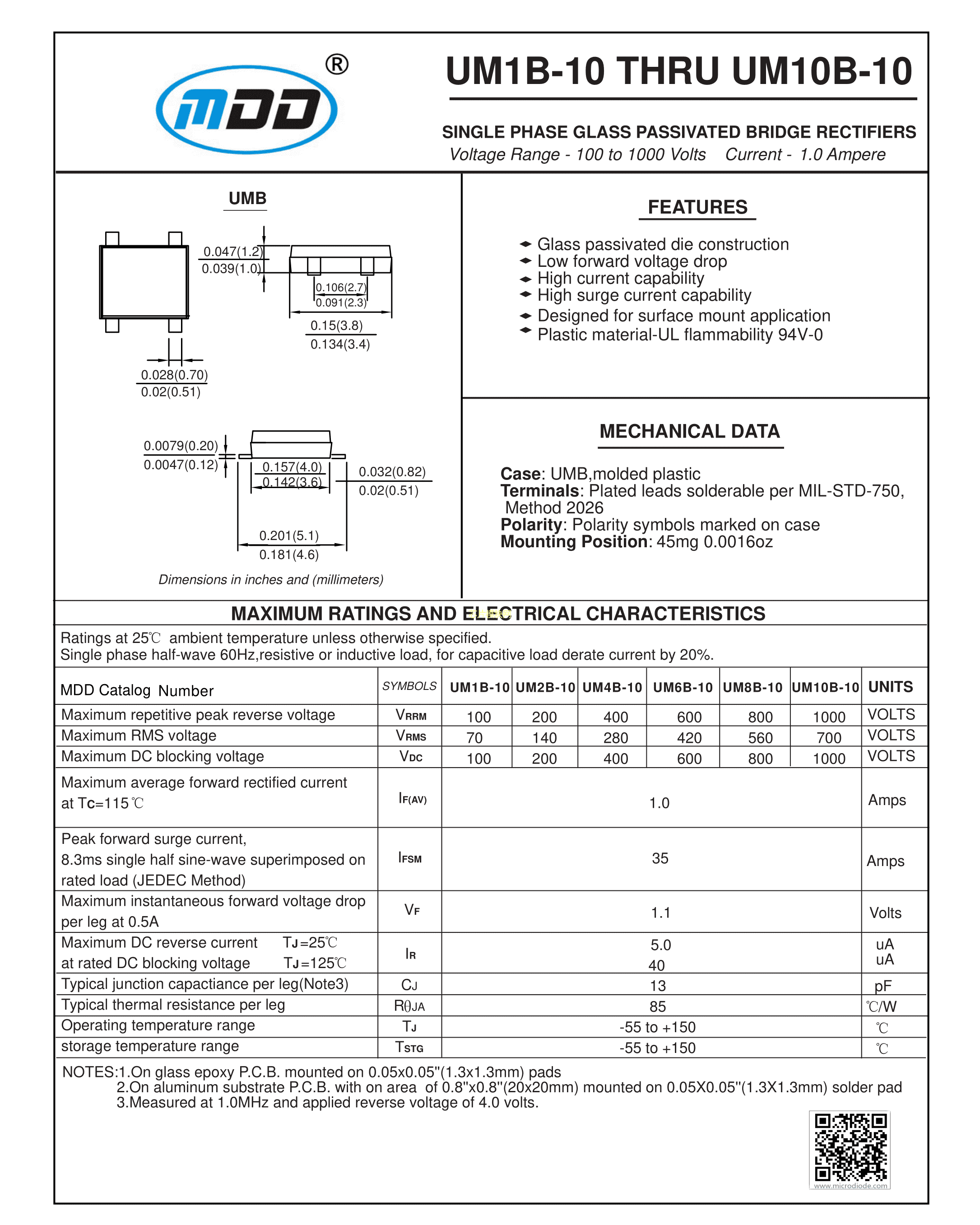 UM10B数据手册UMB封装MDDPDF规格书,中英文下载