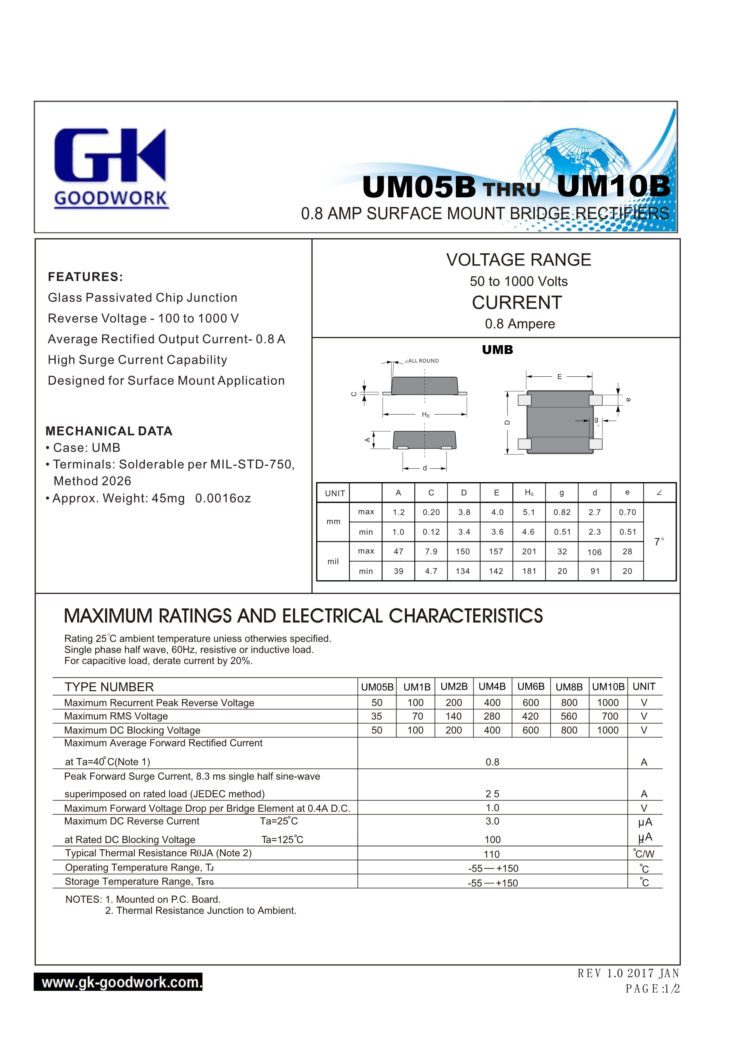 UM10B-B7数据手册UMB封装GOODWORK(固得沃克)PDF规格书,中英文下载