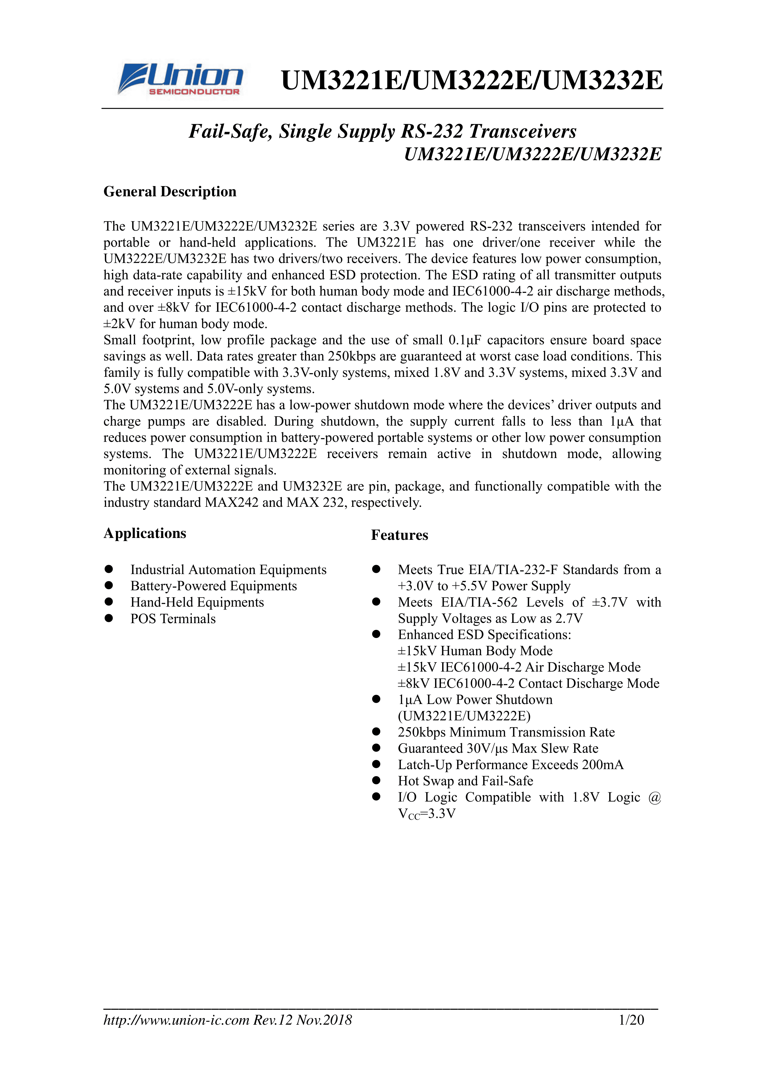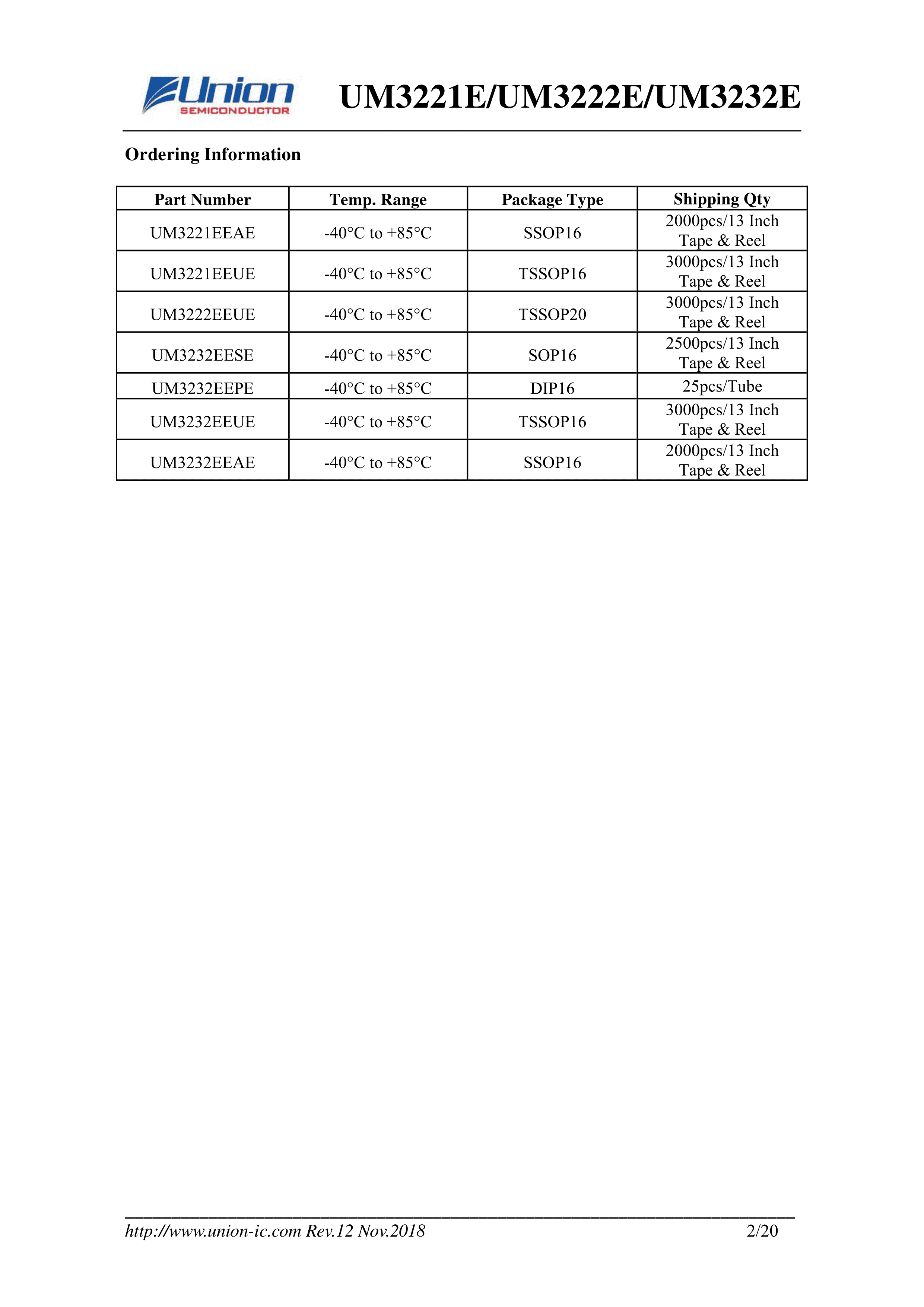 UM3232EEUE数据手册TSSOP-16封装Union(英联)PDF规格书,中英文下载