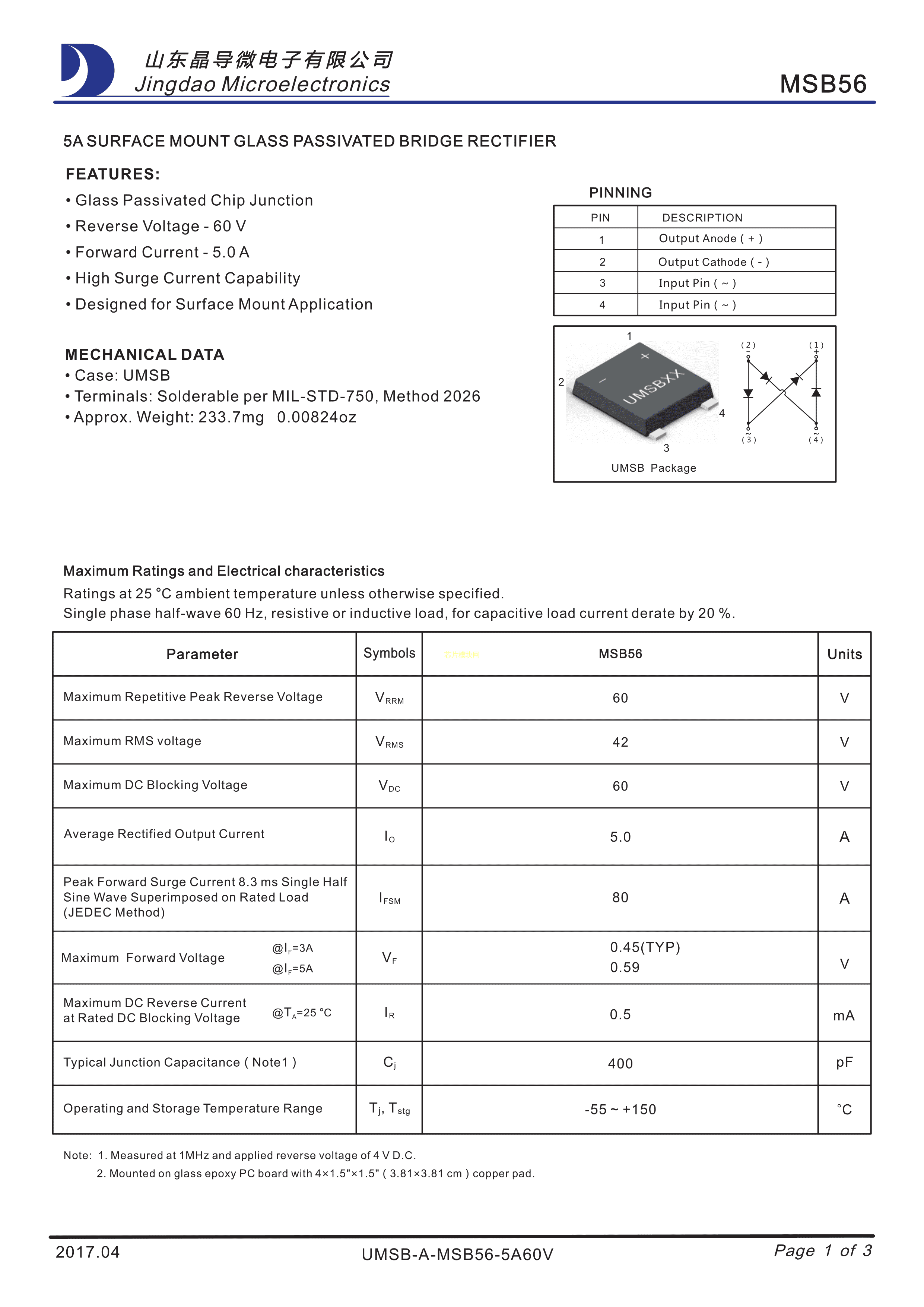 UMSB56数据手册UMSB封装晶导微电子PDF规格书,中英文下载