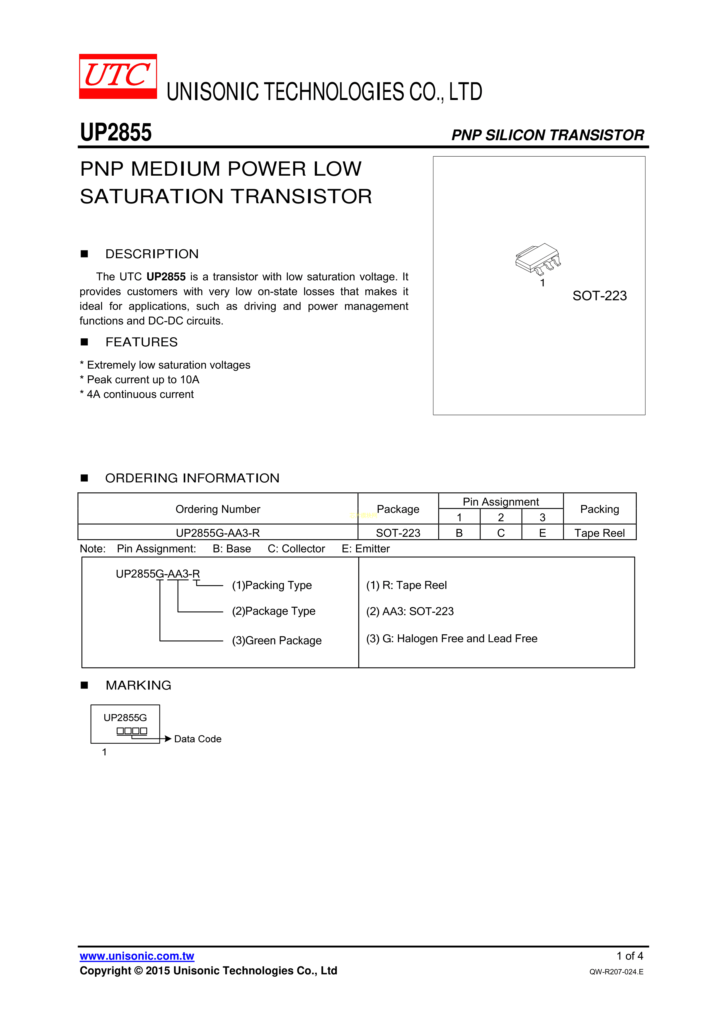 UP2855G-AA3-R数据手册SOT-223封装UTC(友顺)PDF规格书,中英文下载