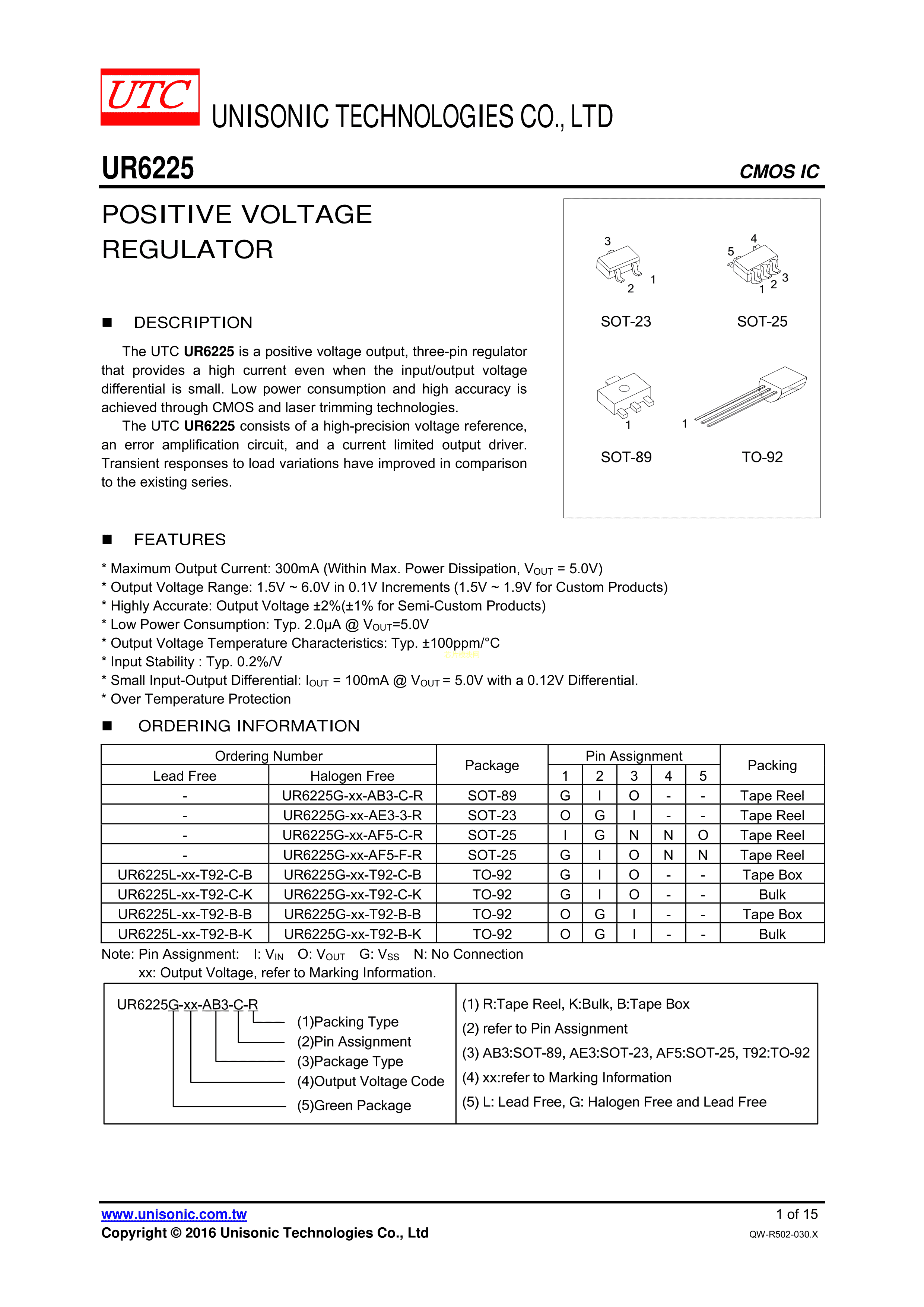 UR6225G-50-AF5-F-R数据手册SOT-25封装UTC(友顺)PDF规格书,中英文下载