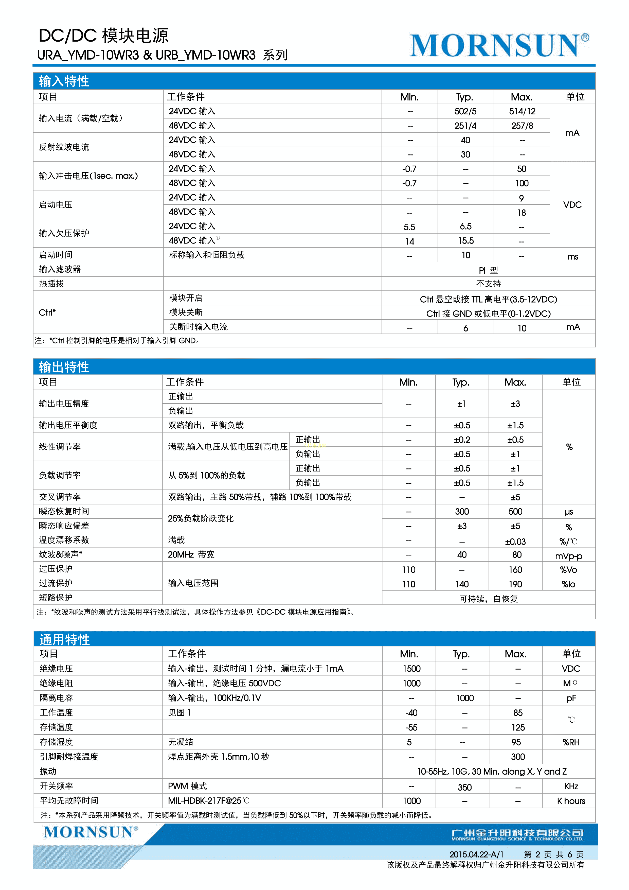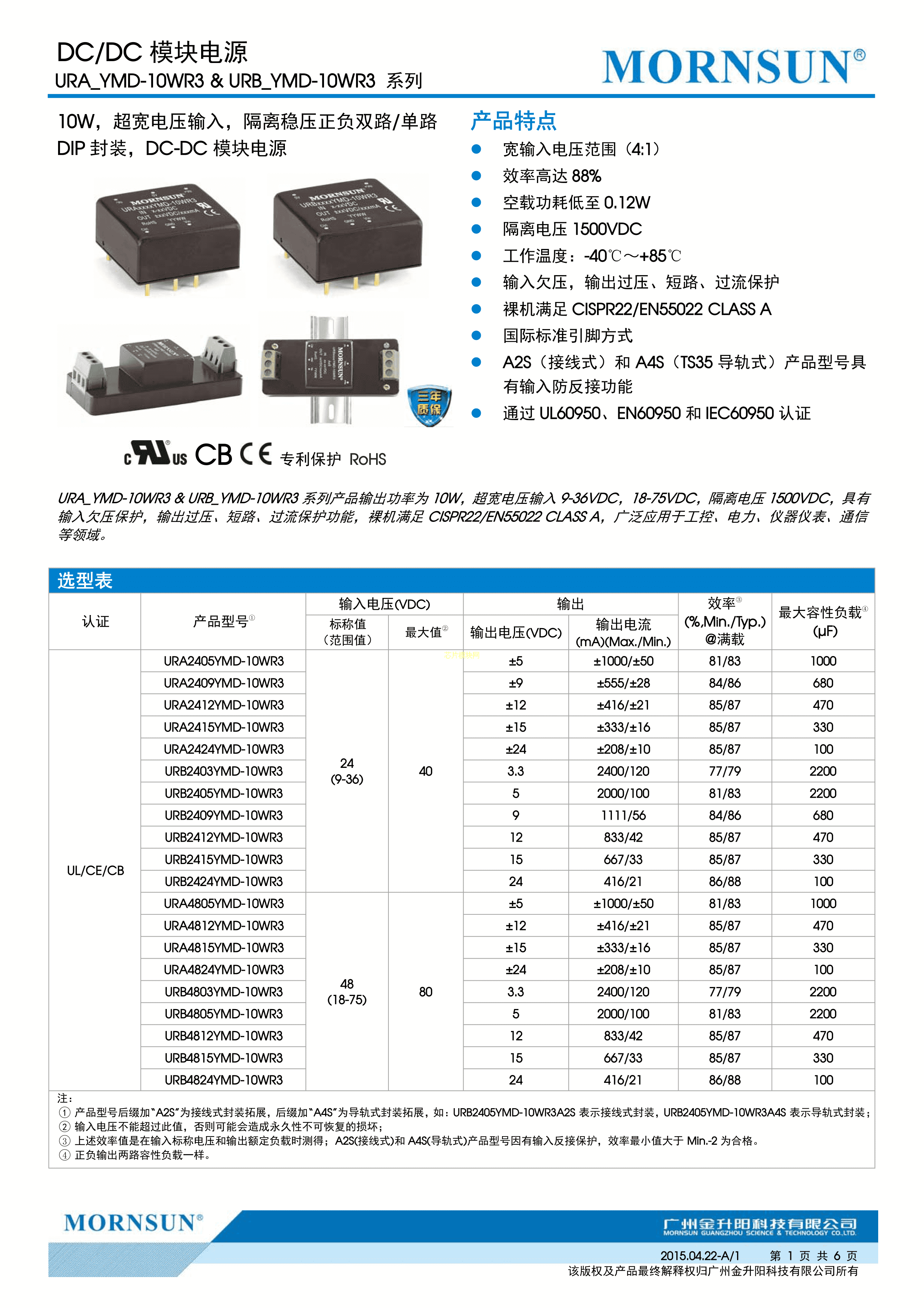 URB2412YMD_10WR3数据手册插件封装MORNSUN(金升阳)PDF规格书,中英文下载