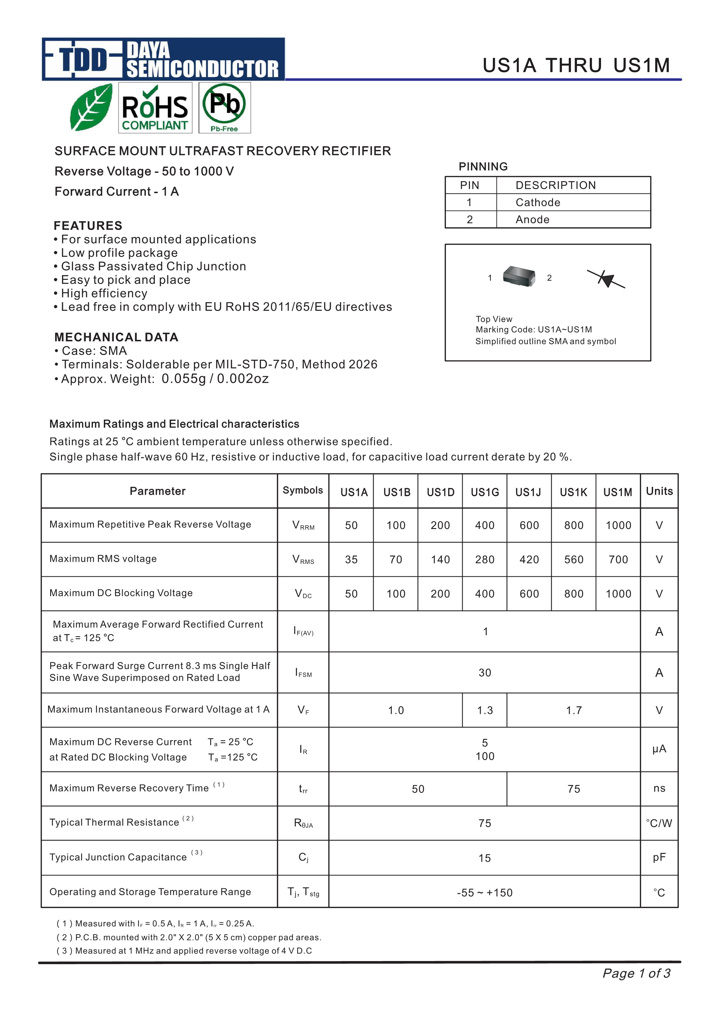 US1D数据手册SMA封装TDD(台冠电子).pdf