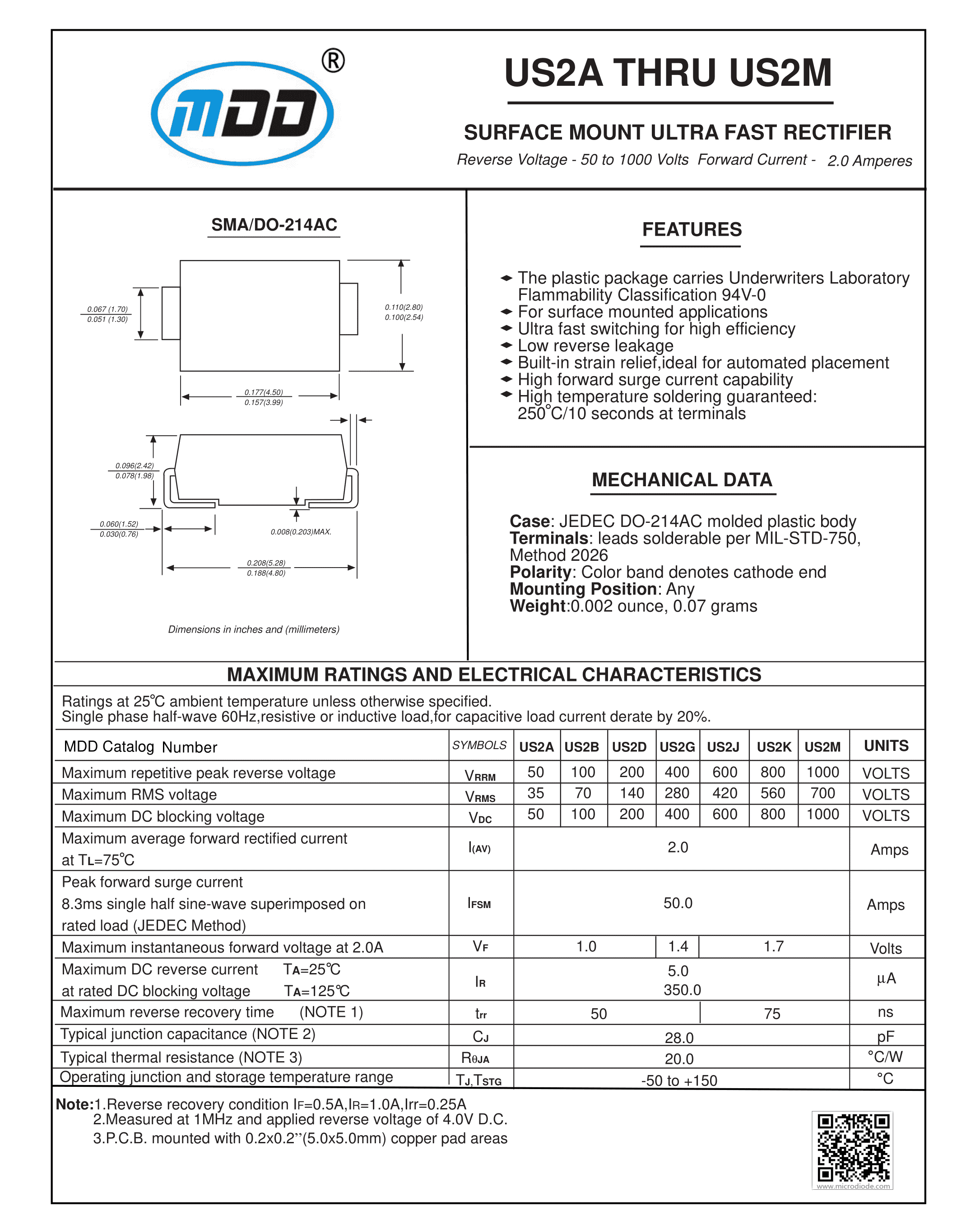 US2D数据手册SMA封装MDDPDF规格书,中英文下载