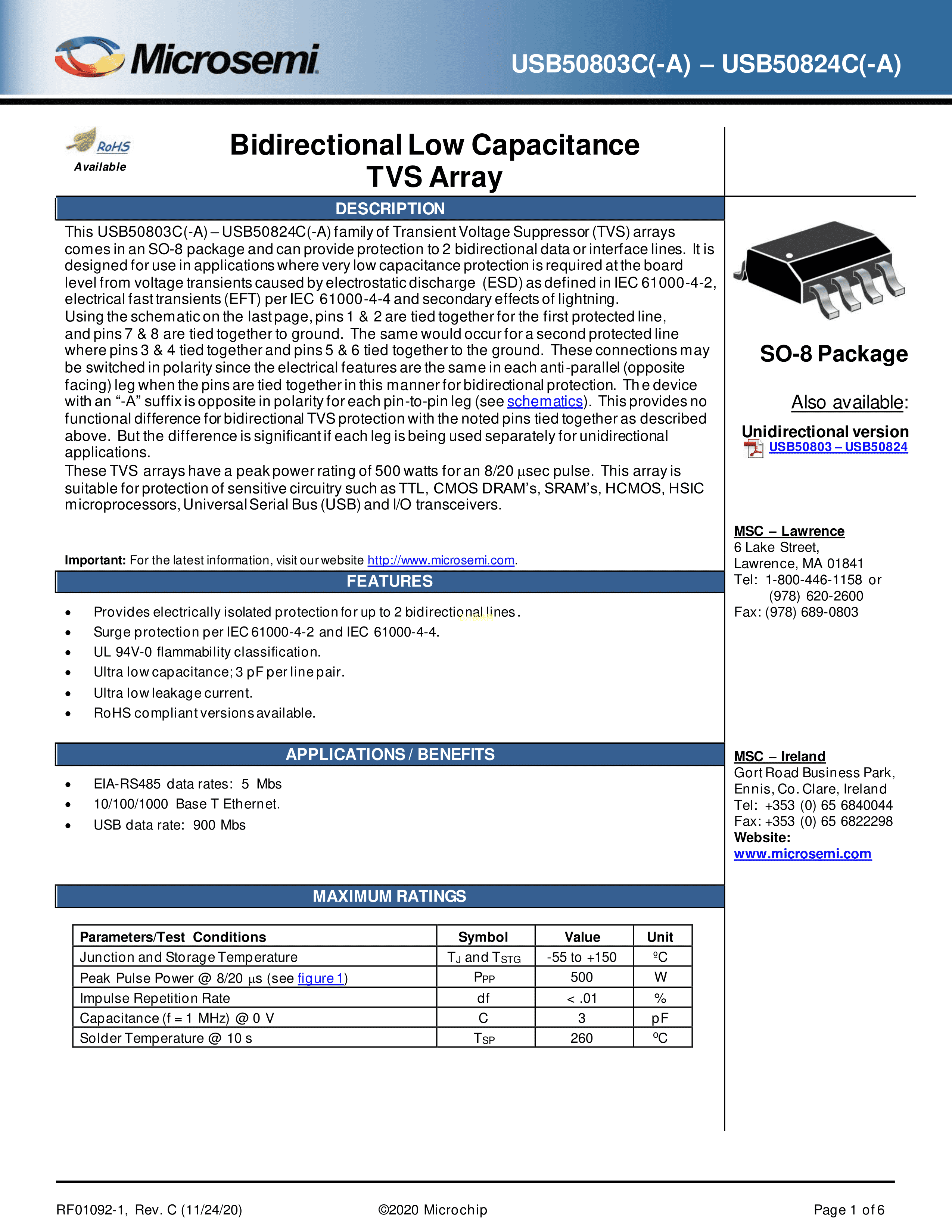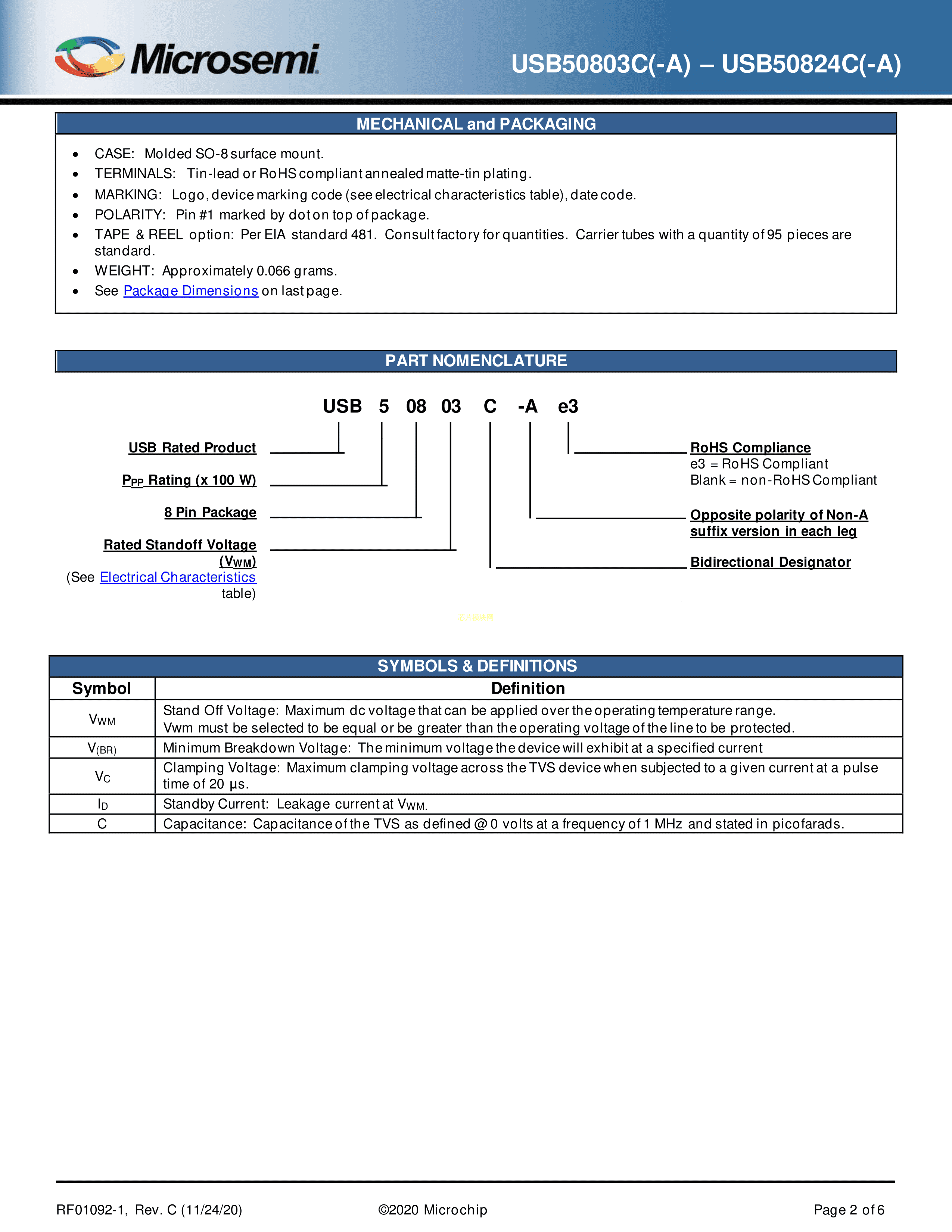 USB50803C-TR7数据手册SO-8封装Microsemi(美高森美)PDF规格书,中英文下载