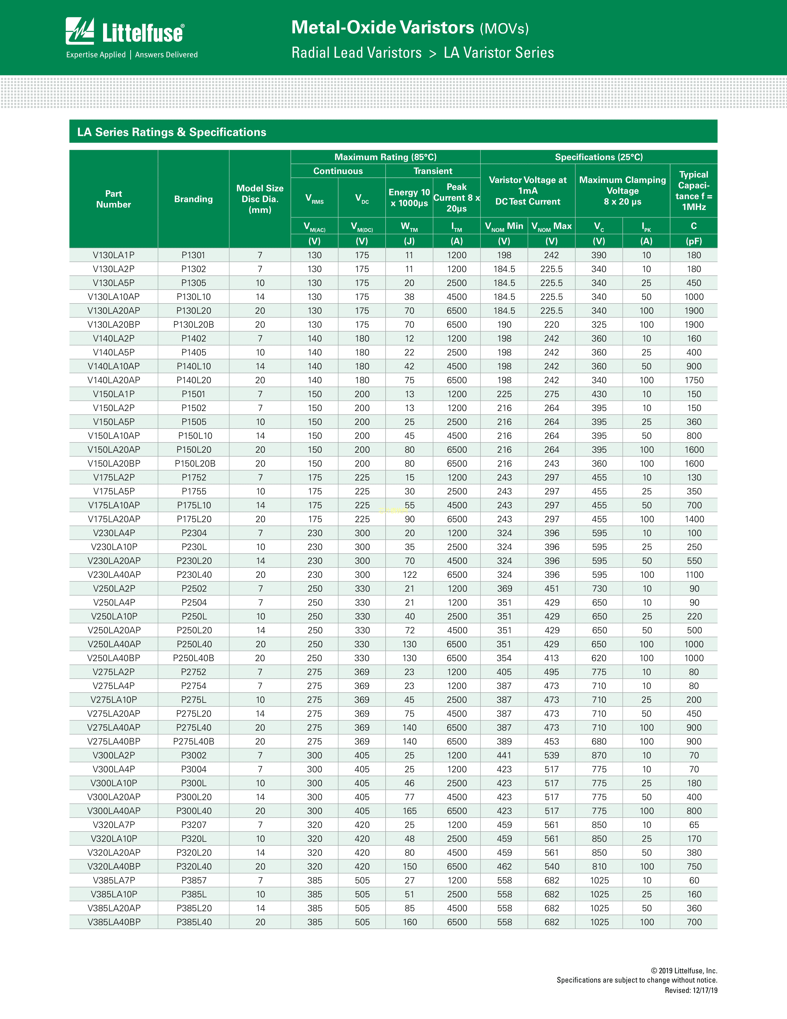 V130LT1P数据手册径向引线封装Littelfuse(美国力特)PDF规格书,中英文下载