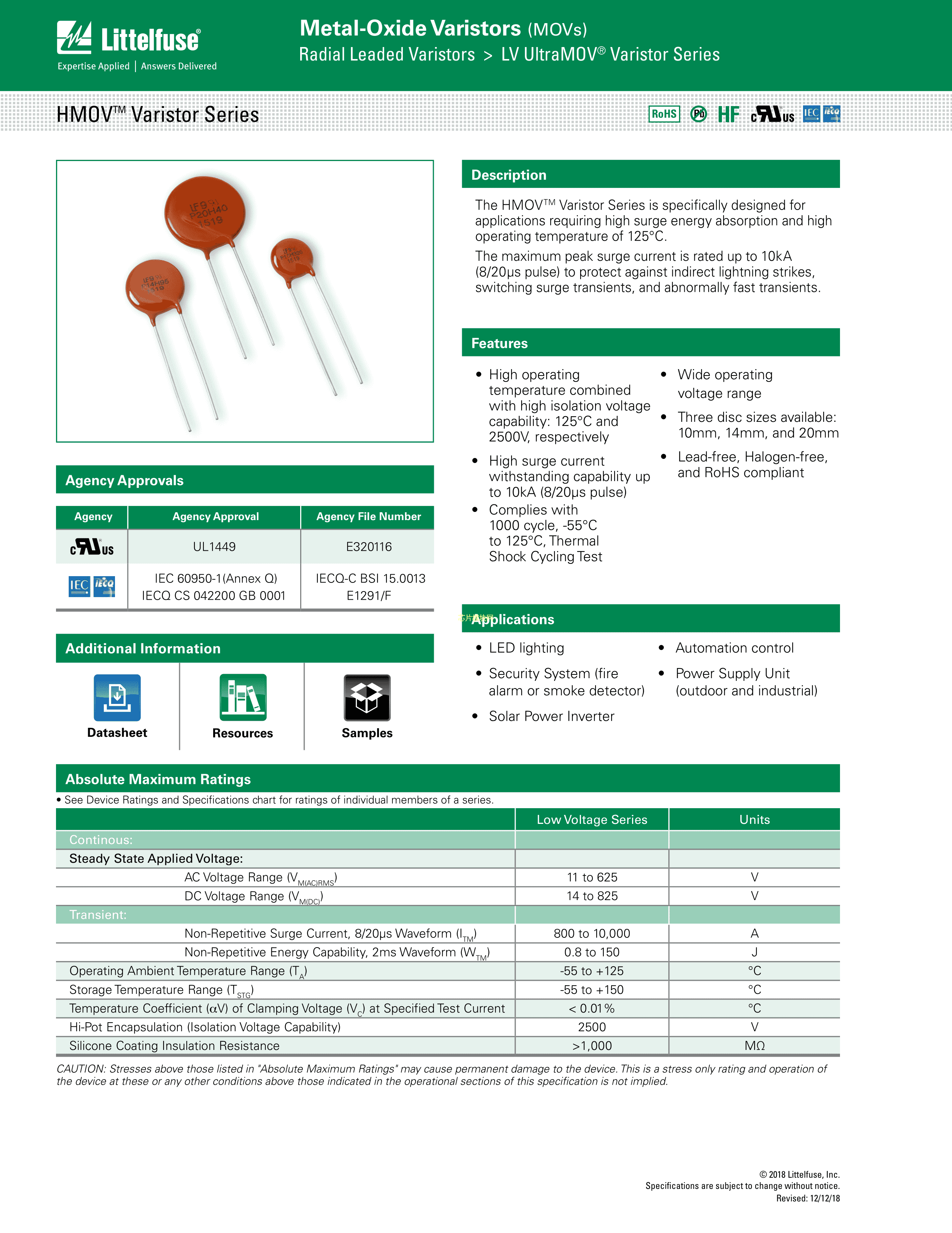 V20H95PL1T数据手册径向引线封装Littelfuse(美国力特)PDF规格书,中英文下载
